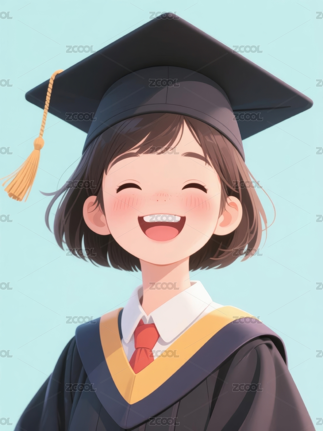 带着学士帽的学生插画卡通
