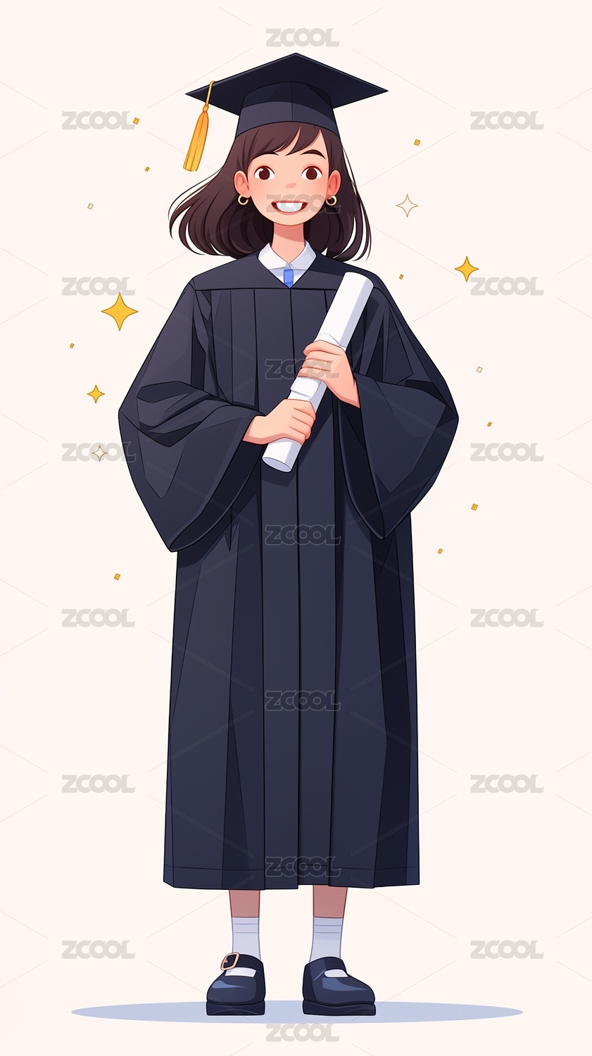 毕业女生角色矢量插画