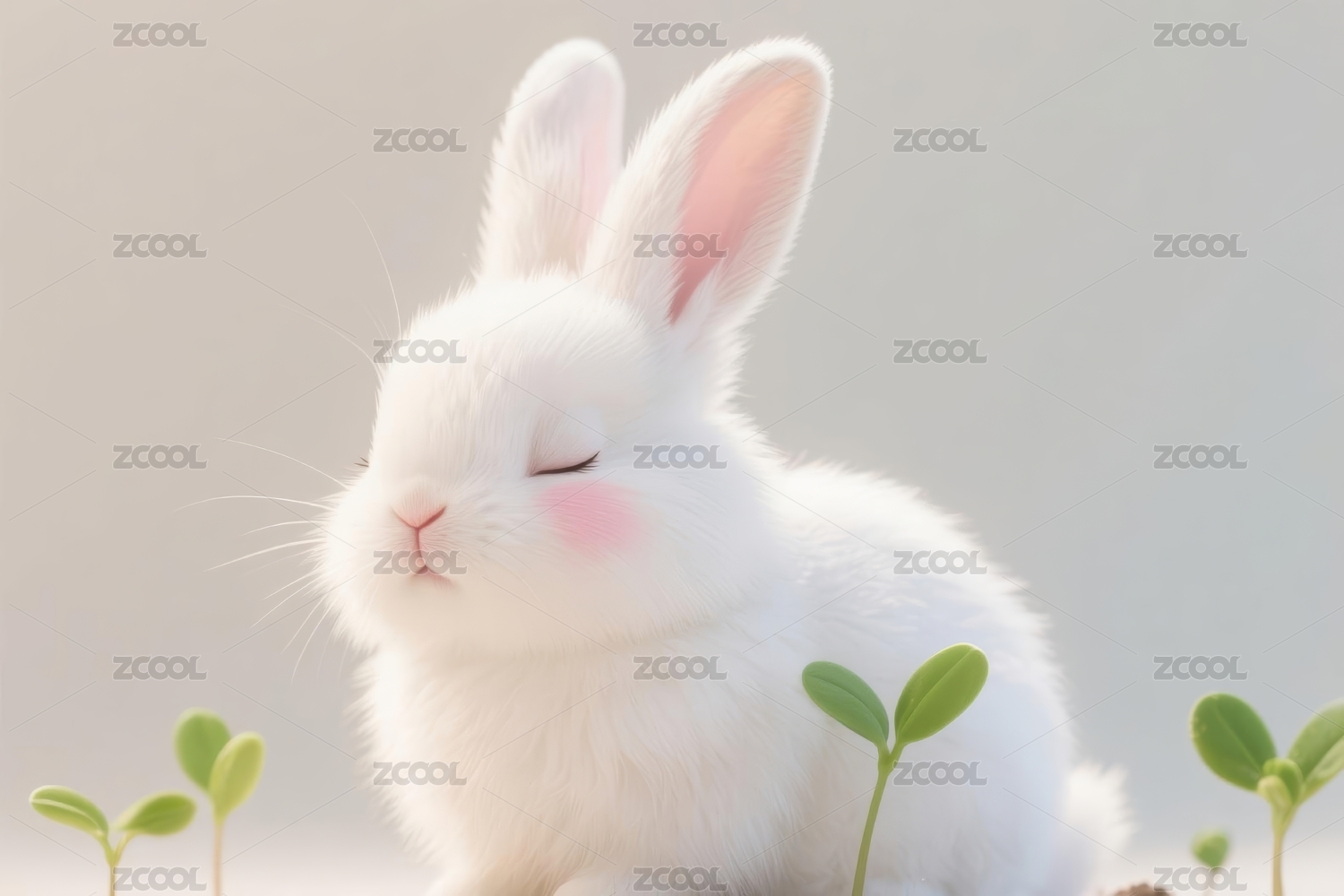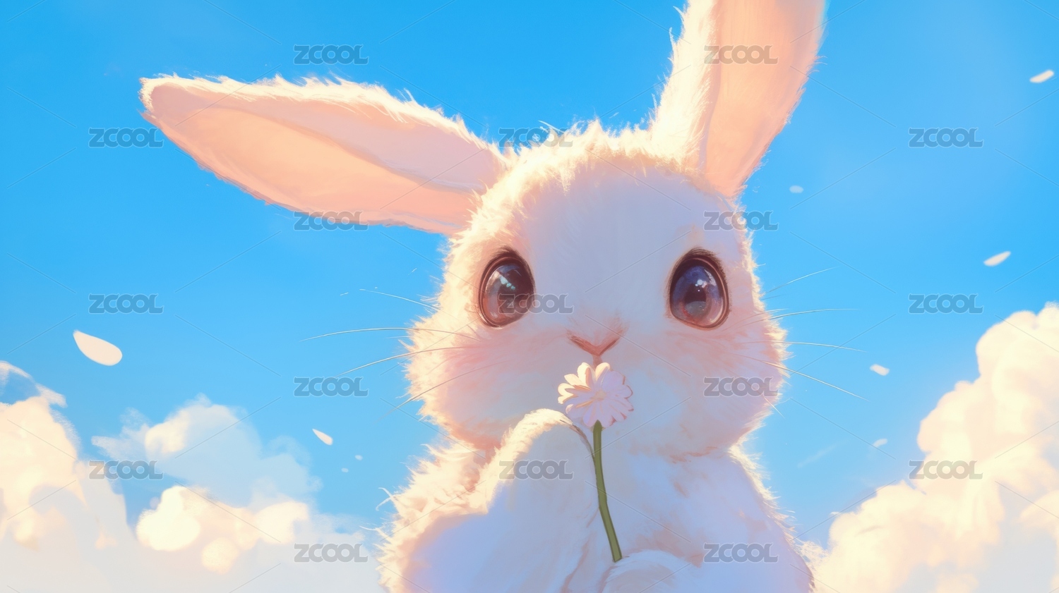 一只毛茸茸的大眼睛兔子横屏壁纸