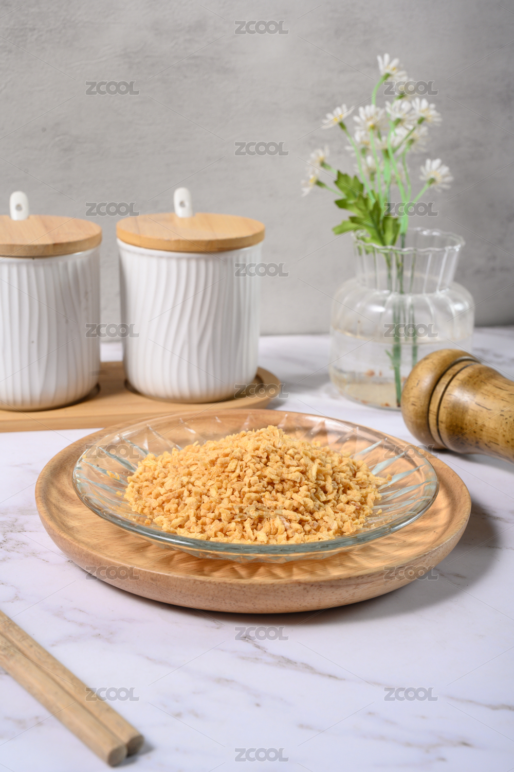 桌面上的盘子里的美味可口的炸蒜