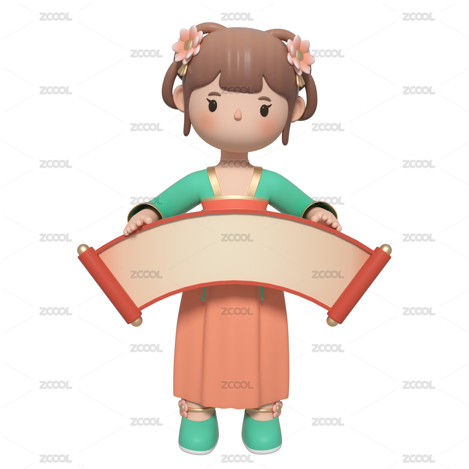 女人,三维图形,插画,卡通,童年,3D,立体,三维,古风,国潮