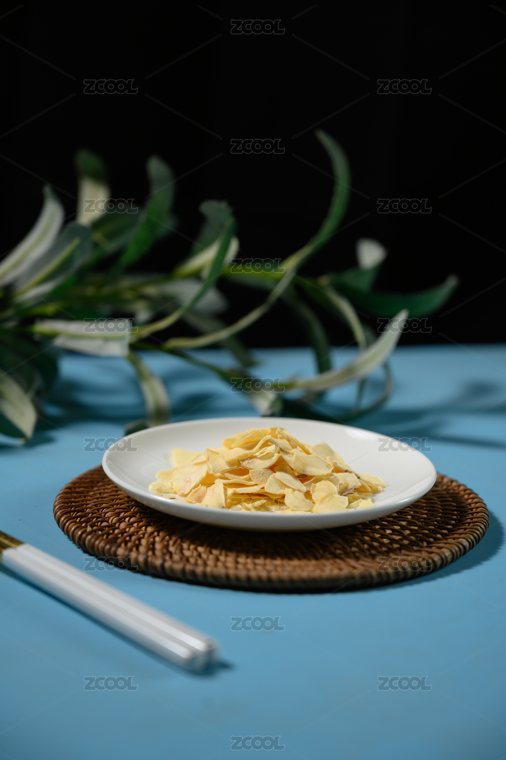 桌面上的盘子里的美味可口的鹰嘴豆片