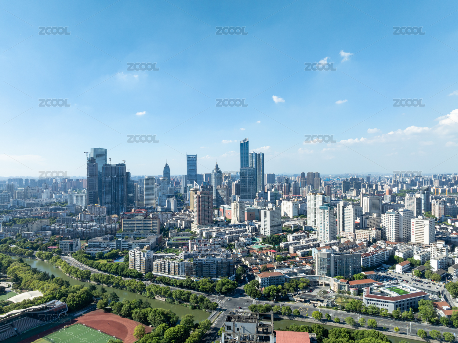 江苏无锡市城市地标建筑市中心蓝天白云风光