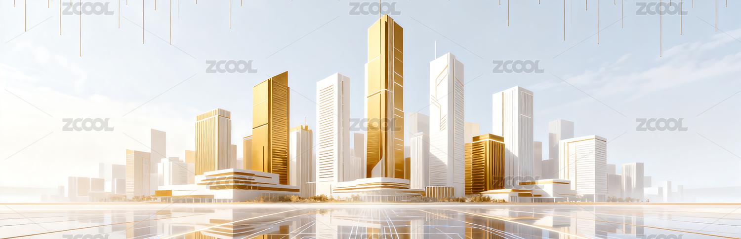 金色商务几何城市建筑主视觉背景