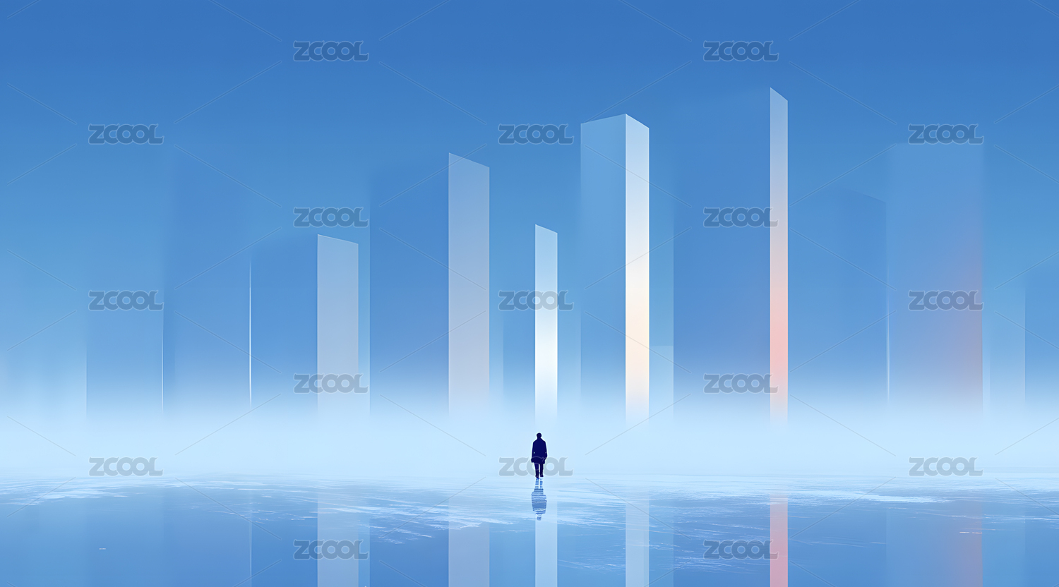 雾中都市孤独背影