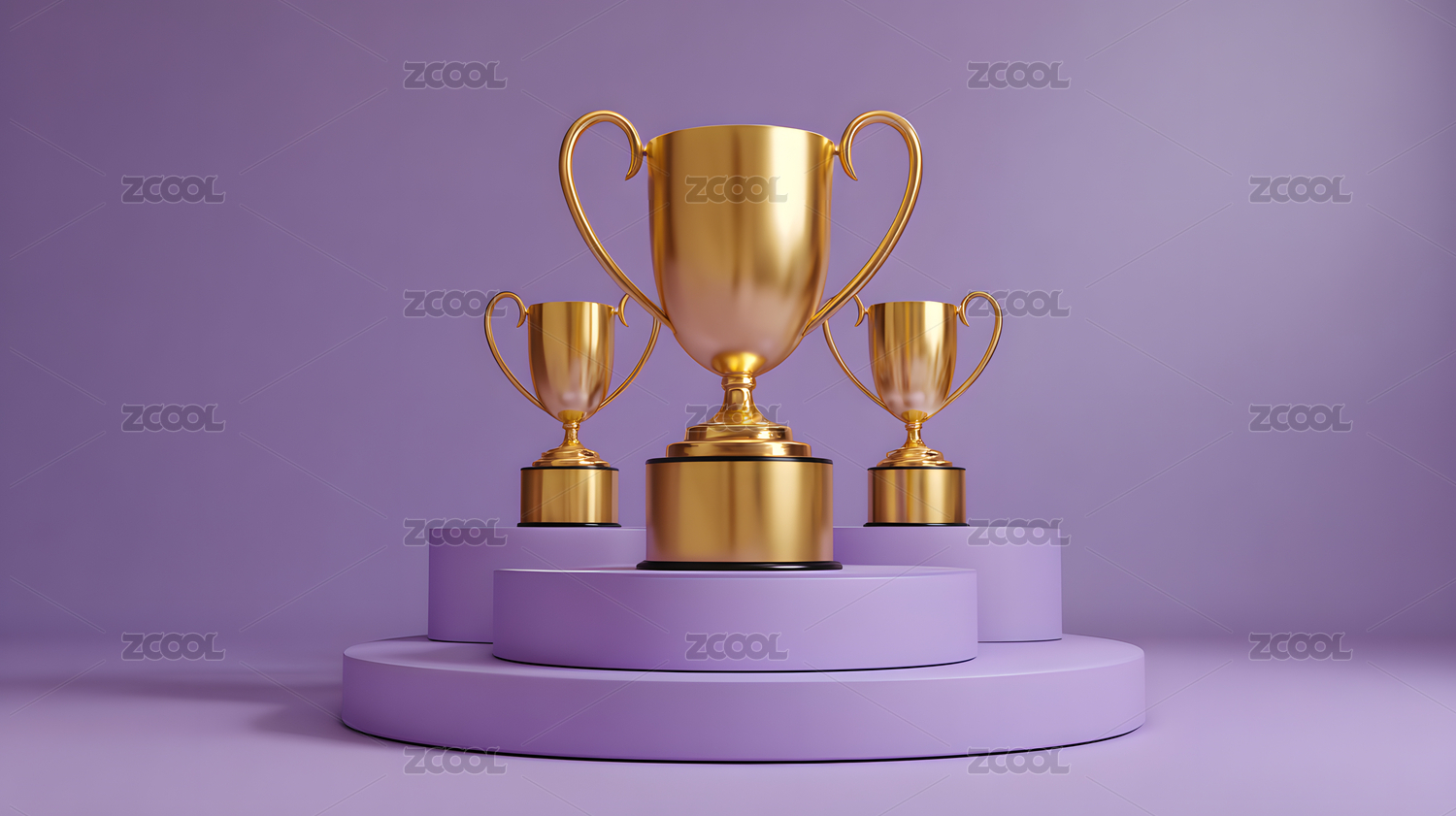 三个奖杯在领奖台上