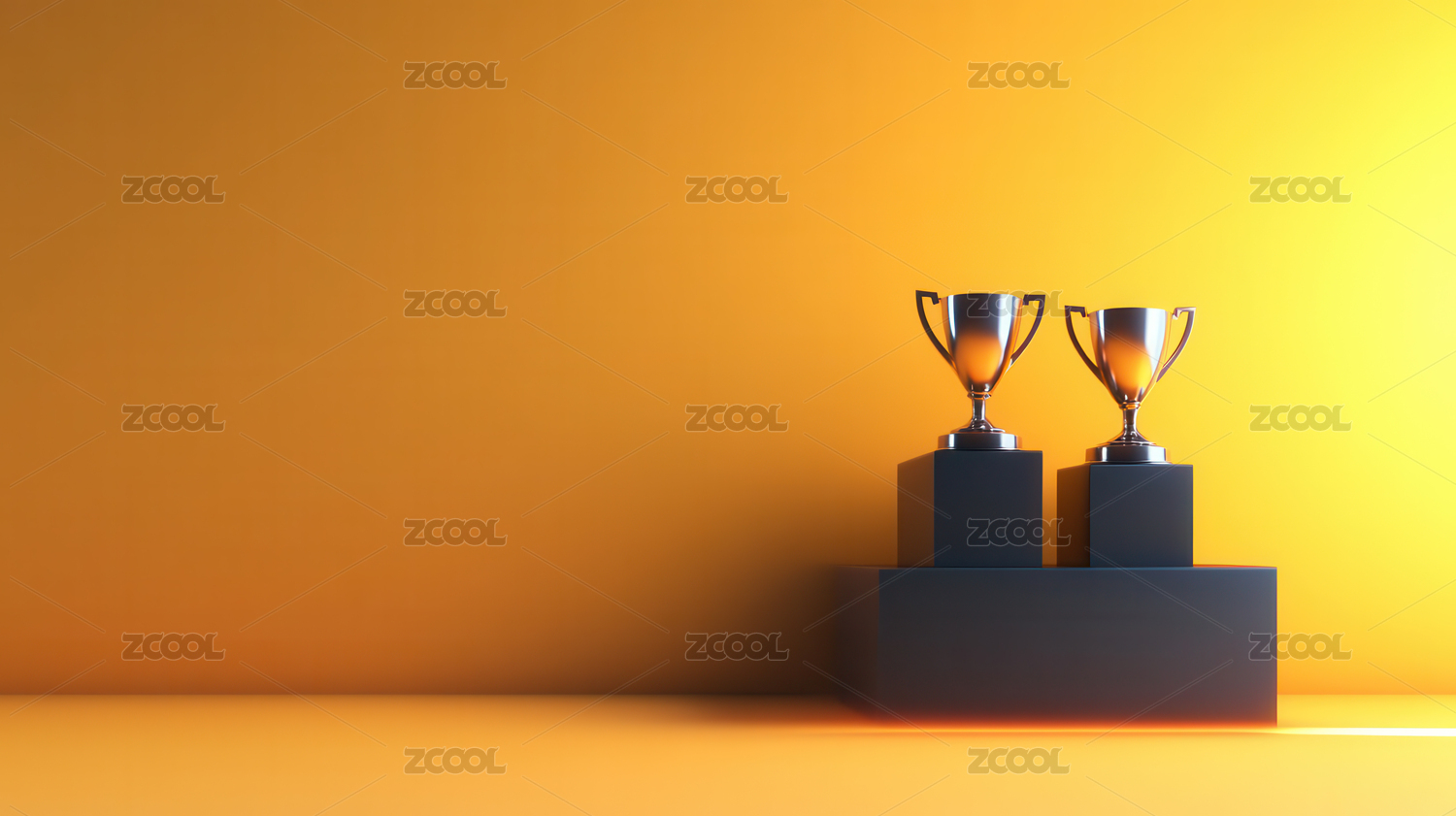 两个奖杯在领奖台上