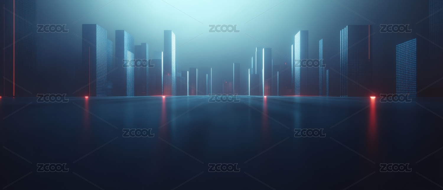 科技蓝色梦幻现代城市高层建筑3D立体插画