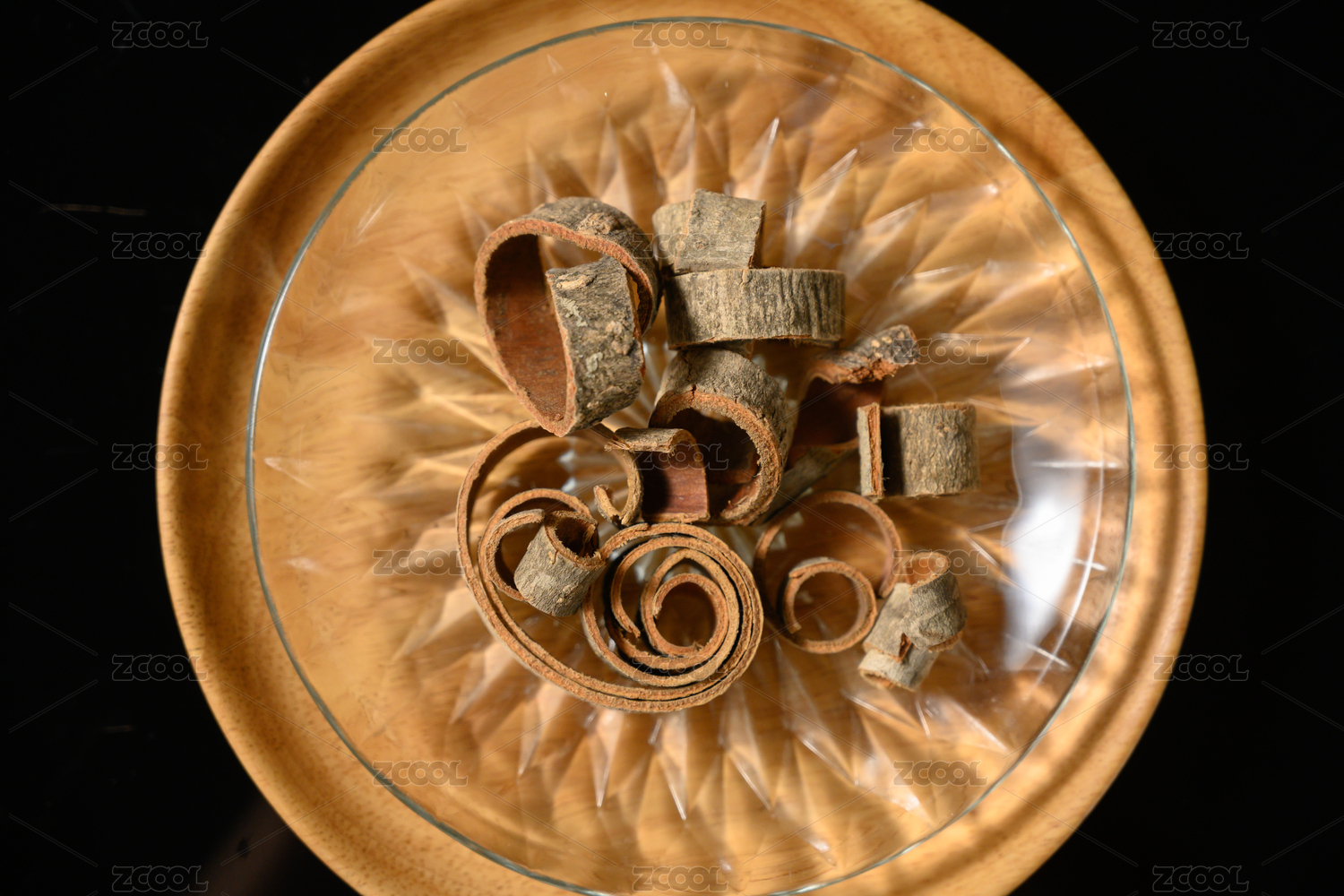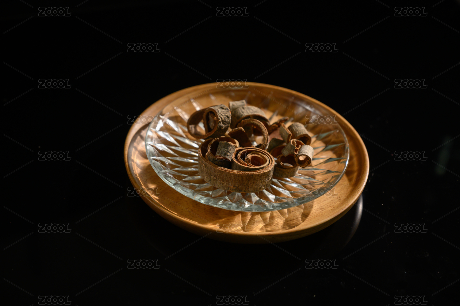 桌面上的盘子里的干爽的秦皮