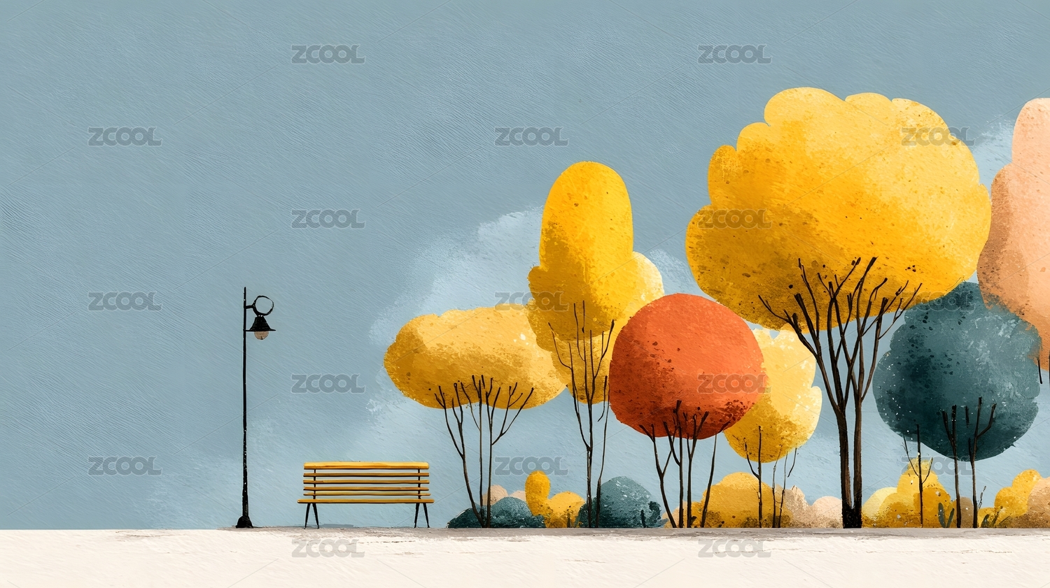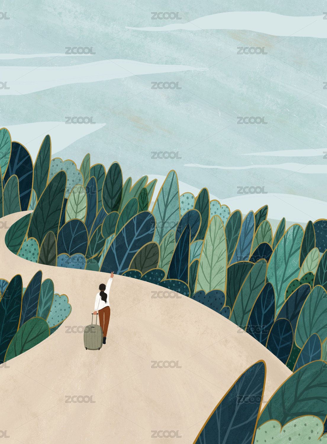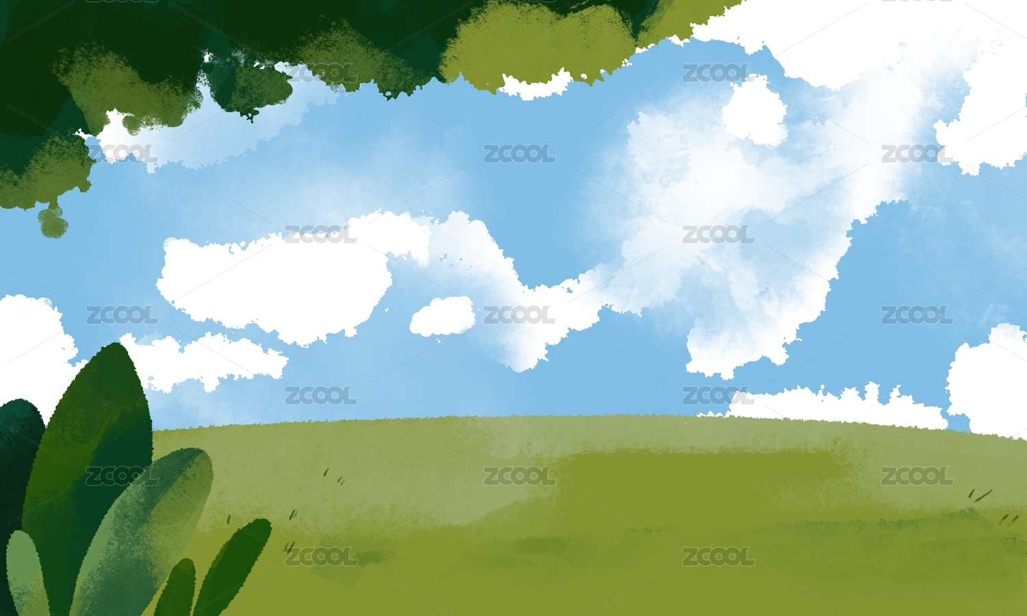 绿色的树林和花草,儿童绘本,卡通风景插画