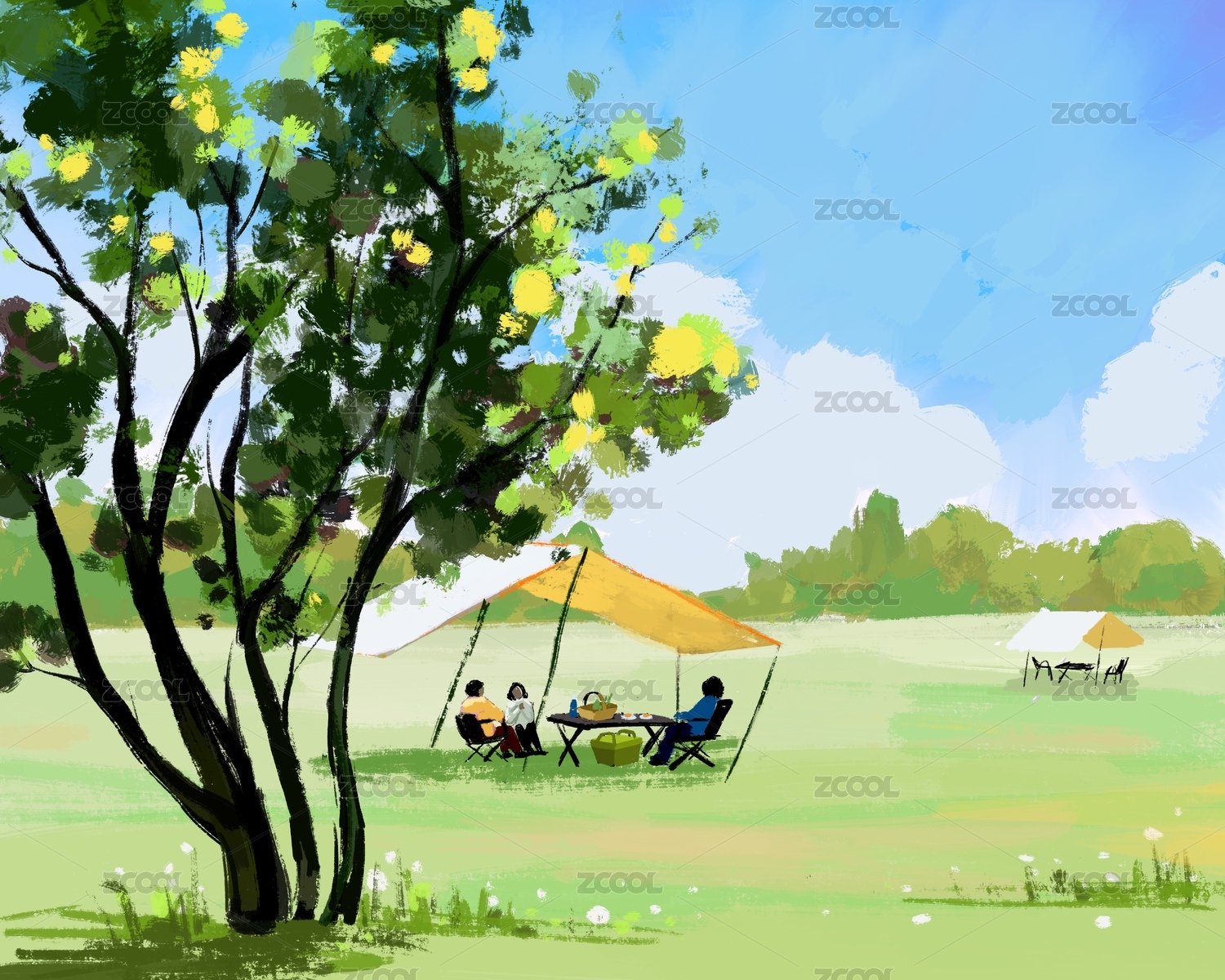 郊游,踏青,户外,夏至,处暑,野餐,插画