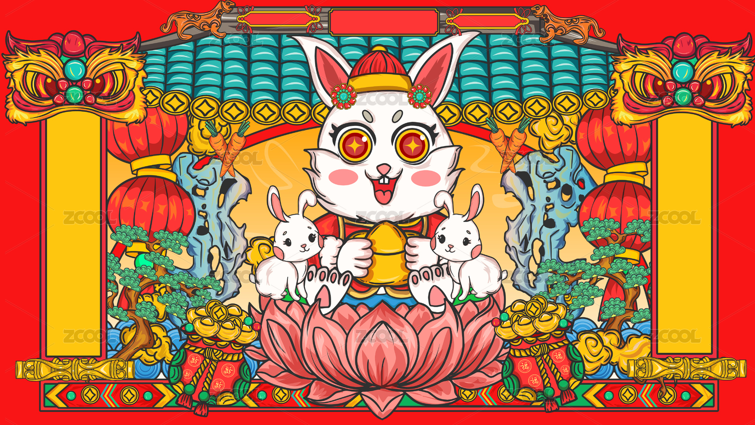 兔年,春节,国潮,荷花,财宝,元宝,聚宝盆,矢量,新年,金子