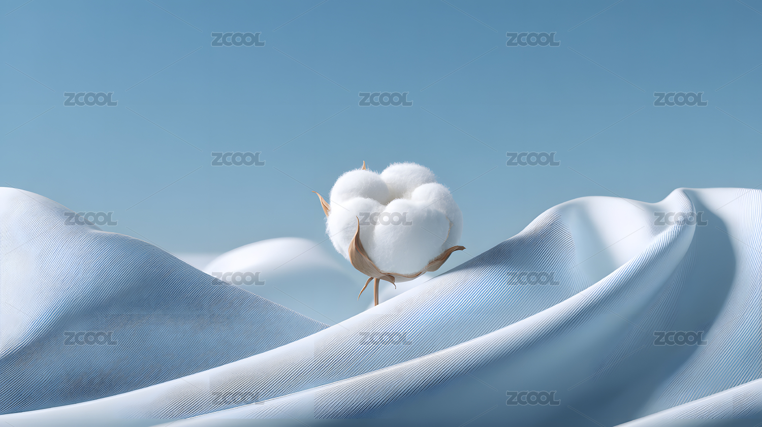棉花与蓝色织物场景