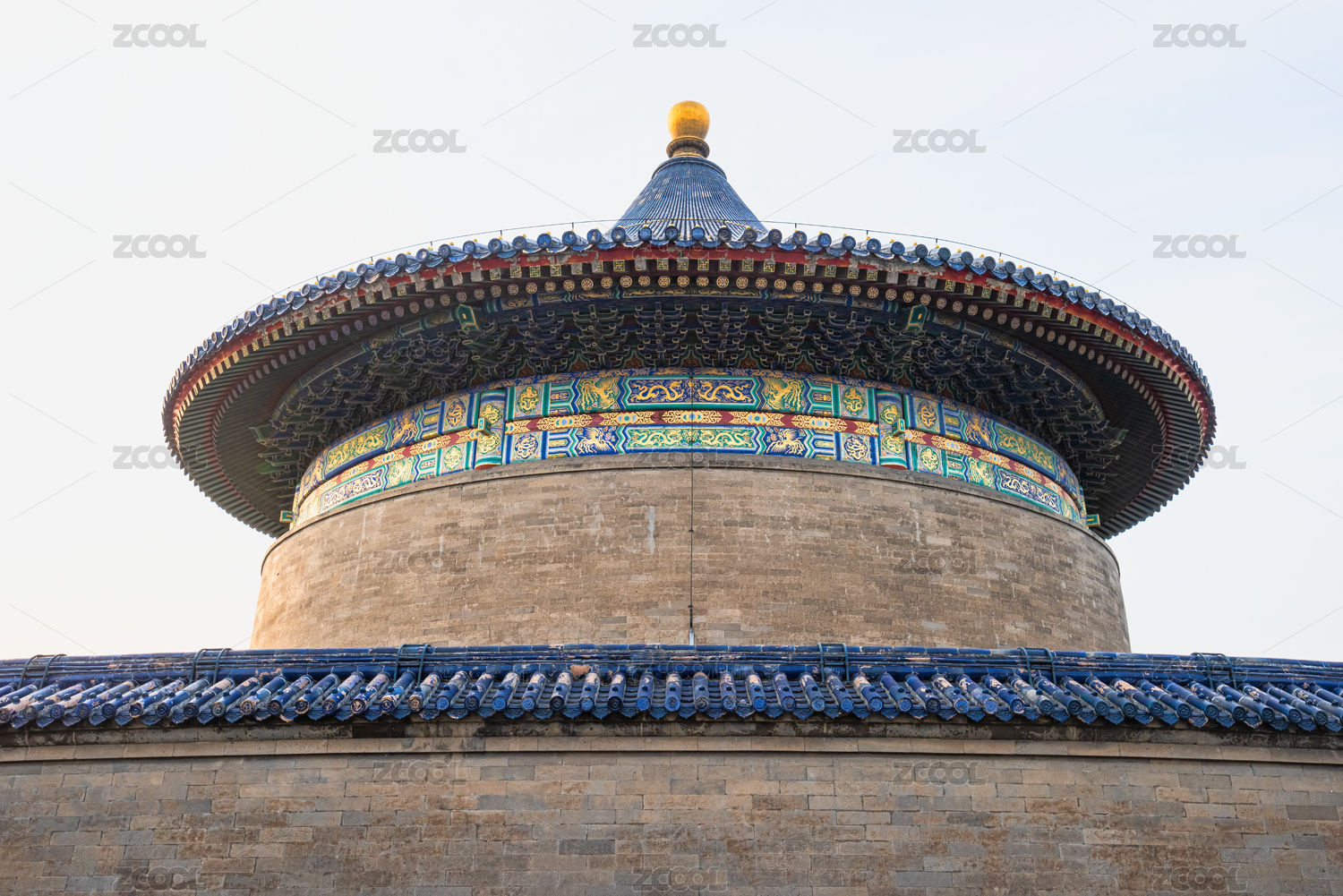 清晨阳光下的天坛皇穹宇蓝色屋顶特写