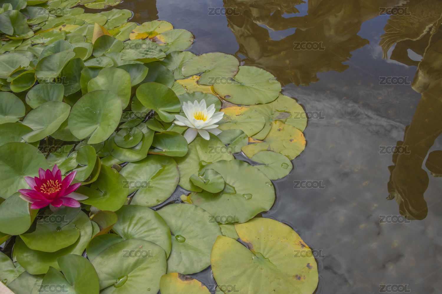 中国大兴安岭夏天池塘里的睡莲与倒影