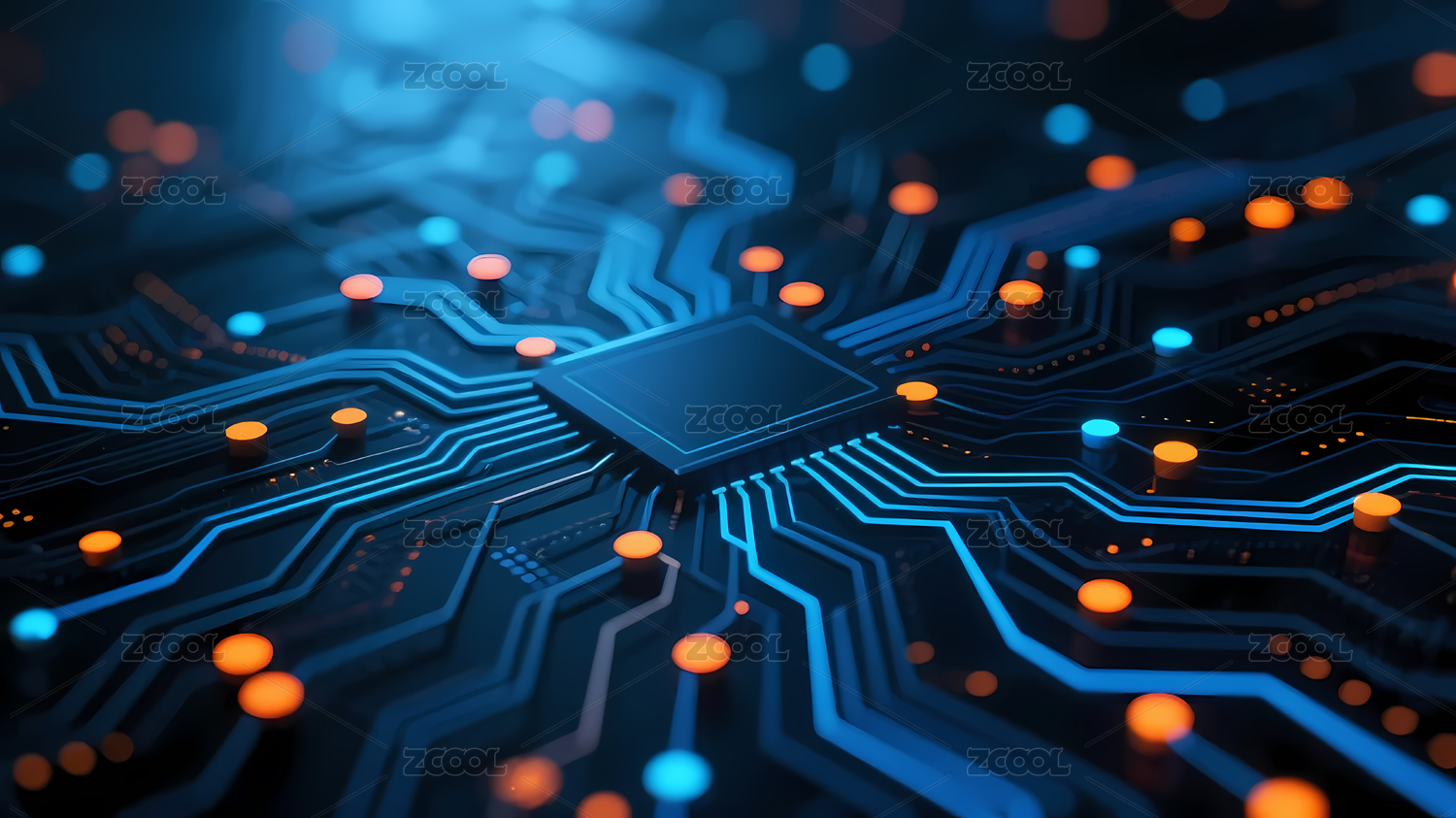 科技感蓝色电路芯片
