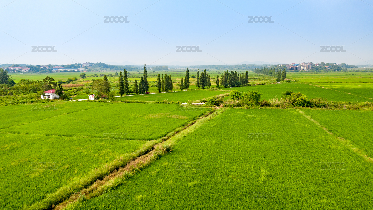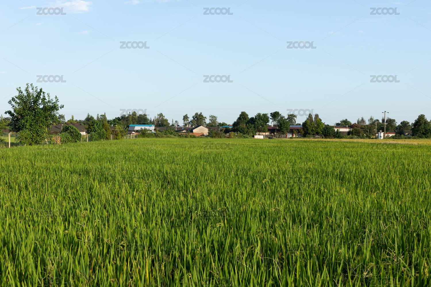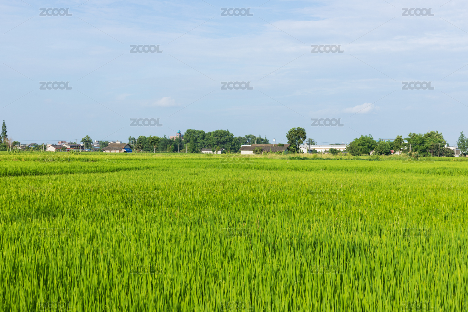 蓝天和稻田