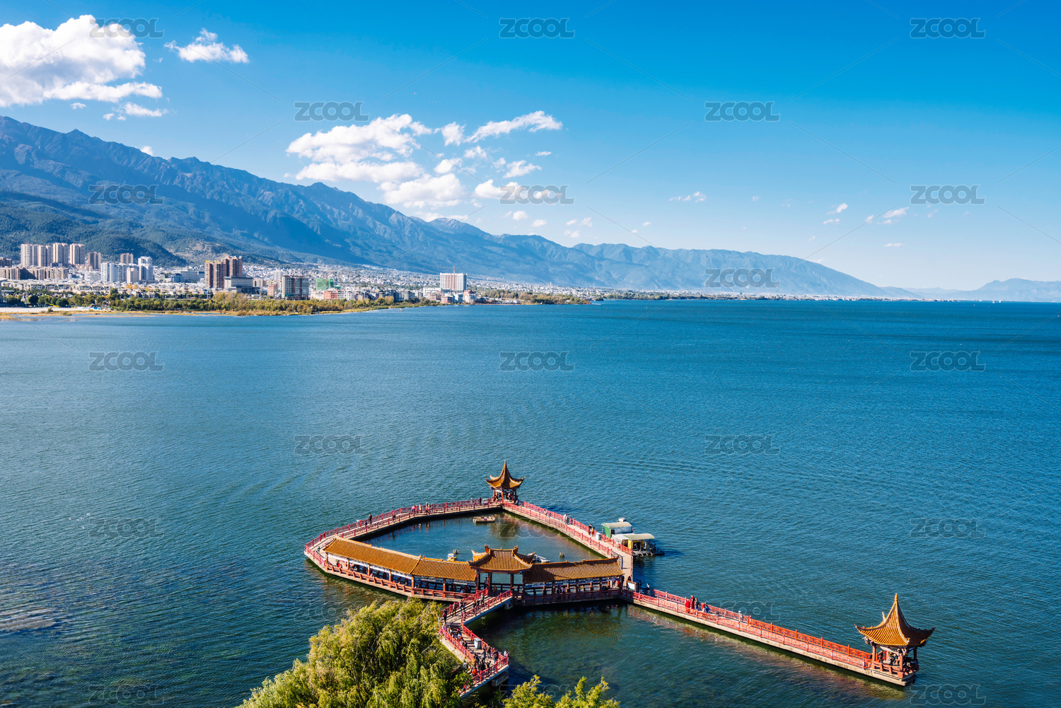 云南,大理,洱海,洱海公园,海鸥,海,水面,亭子,公园,白色的鸟