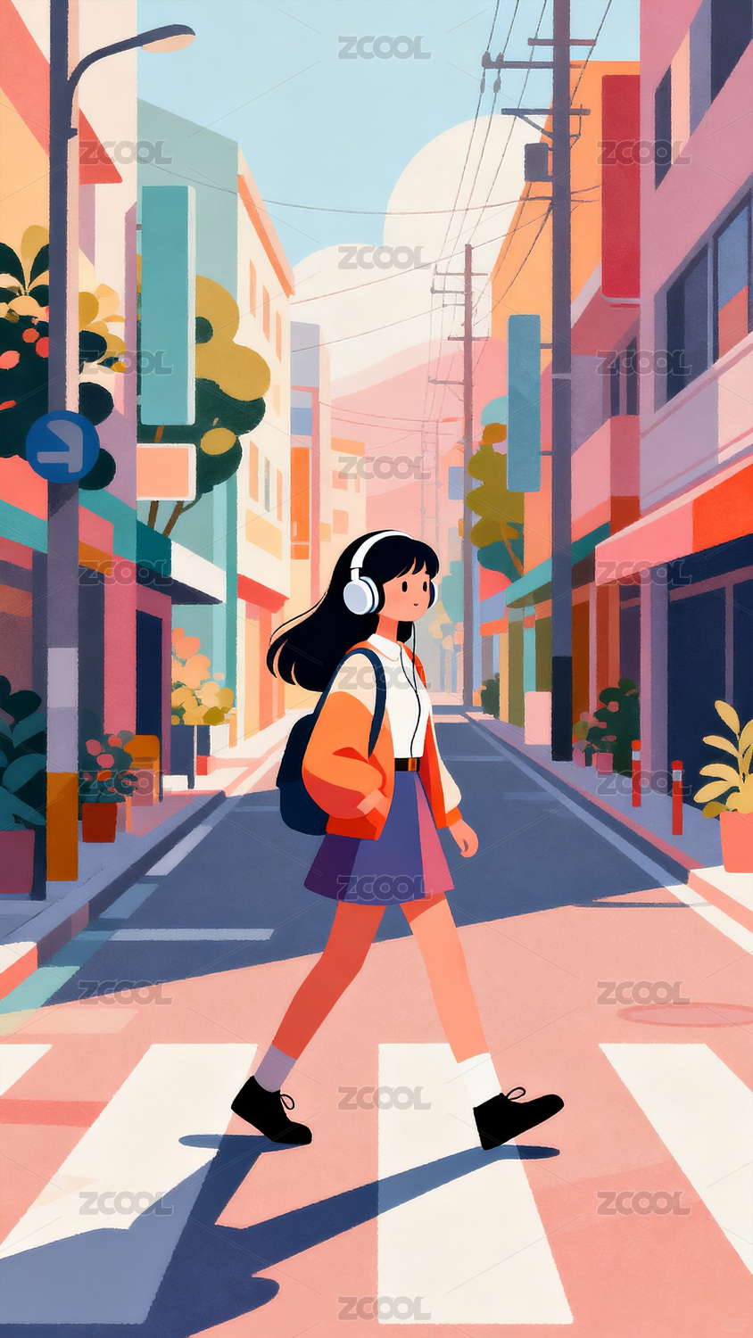 涂鸦扁平潮流女孩