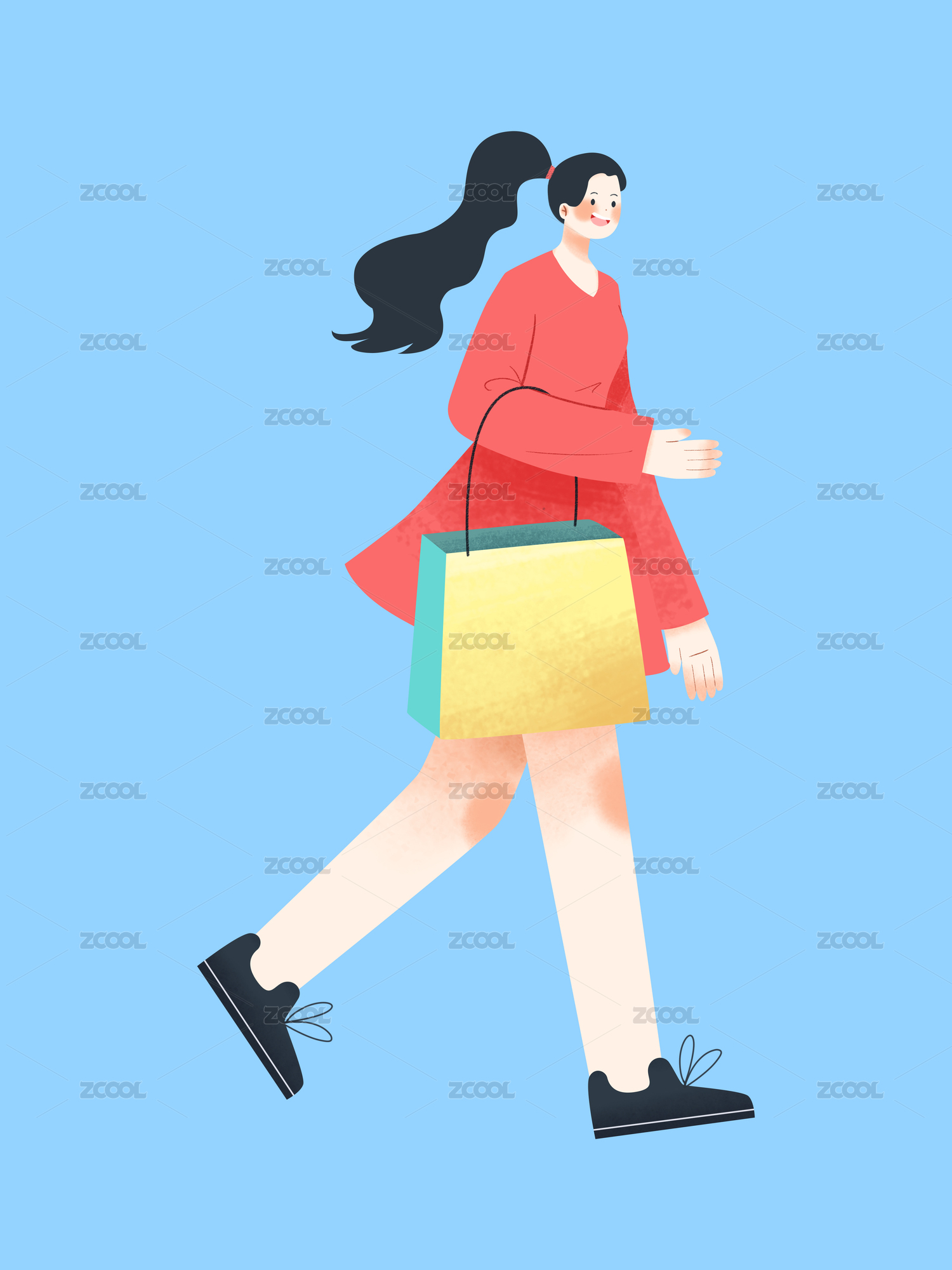 购物的女孩矢量插画