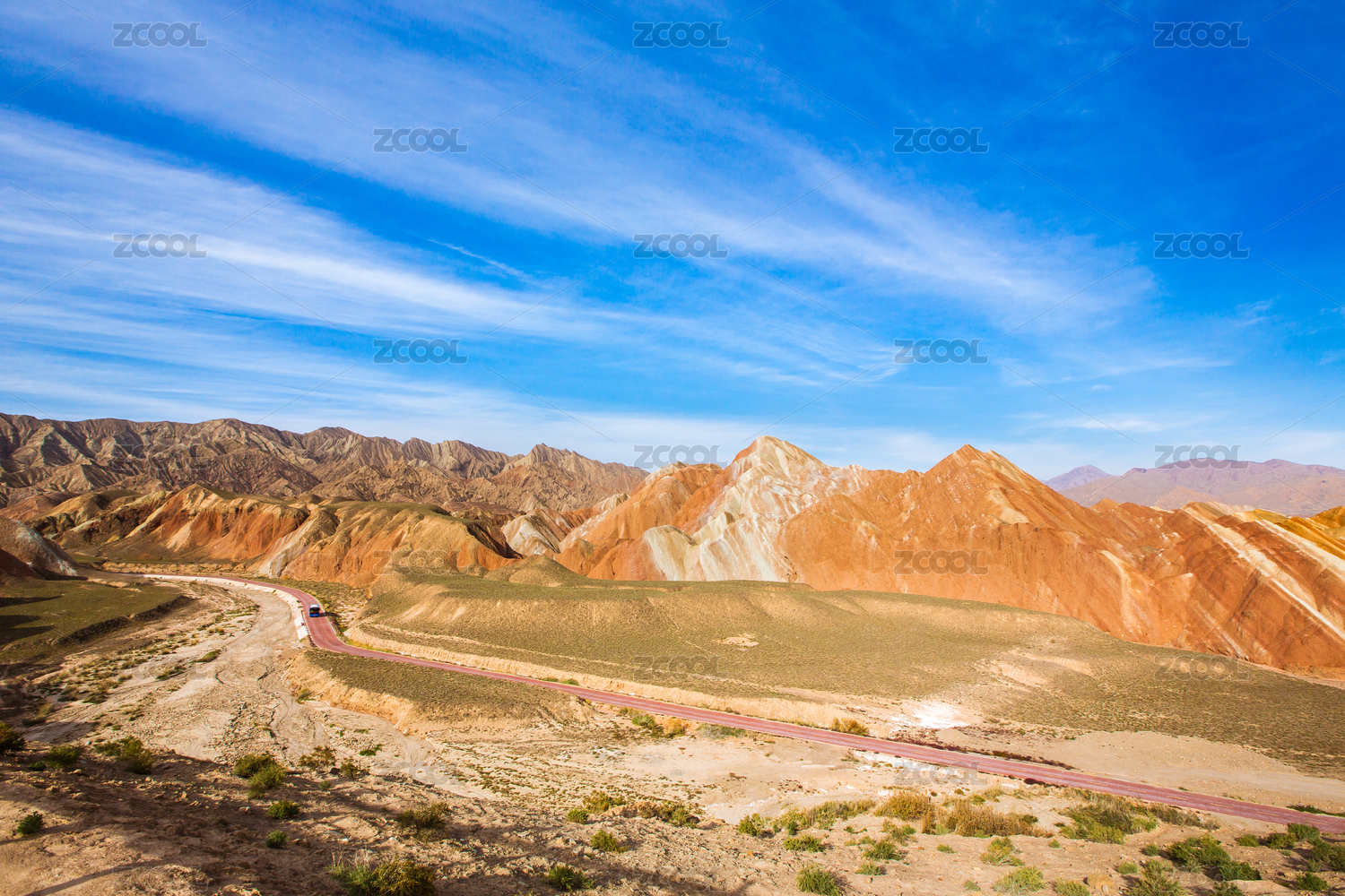 中国甘肃张掖七彩丹霞地貌及山坡空地