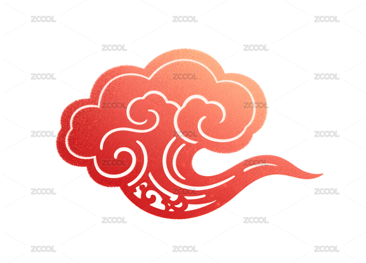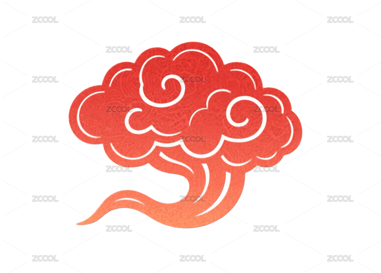 红色传统祥云图案剪纸