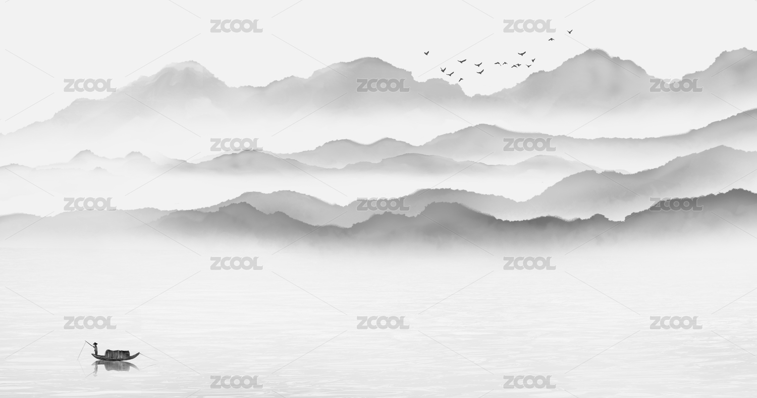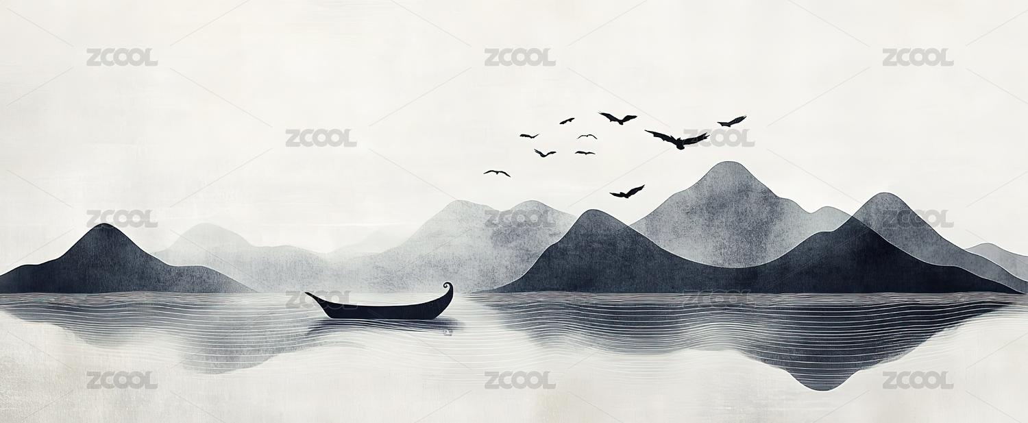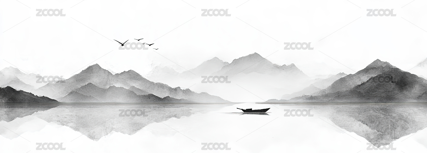 水墨画,山水画,中国画,写意画,风景画,山,水,船,平静,宁静