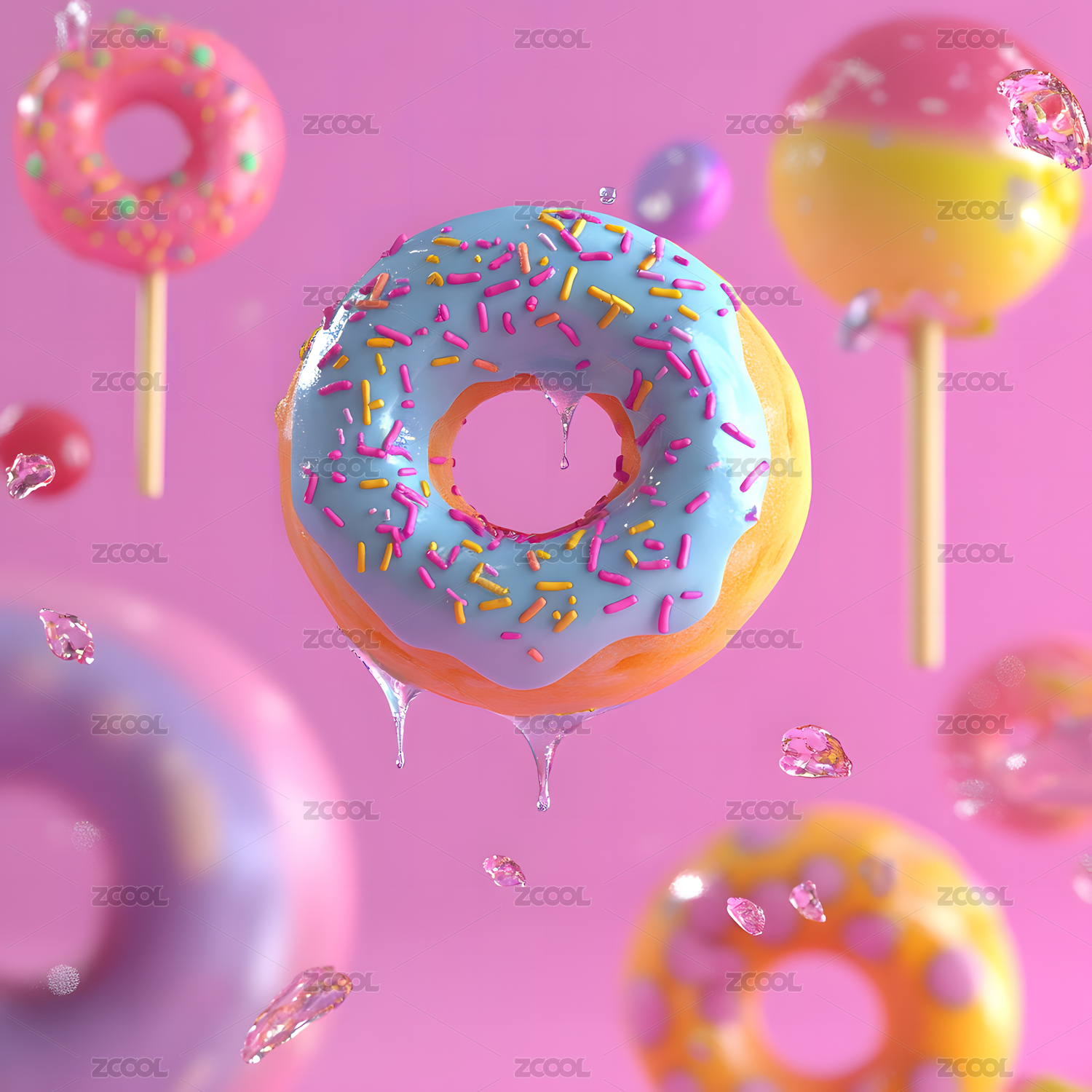 立体风格美食零食甜甜圈糖果电商海报元素