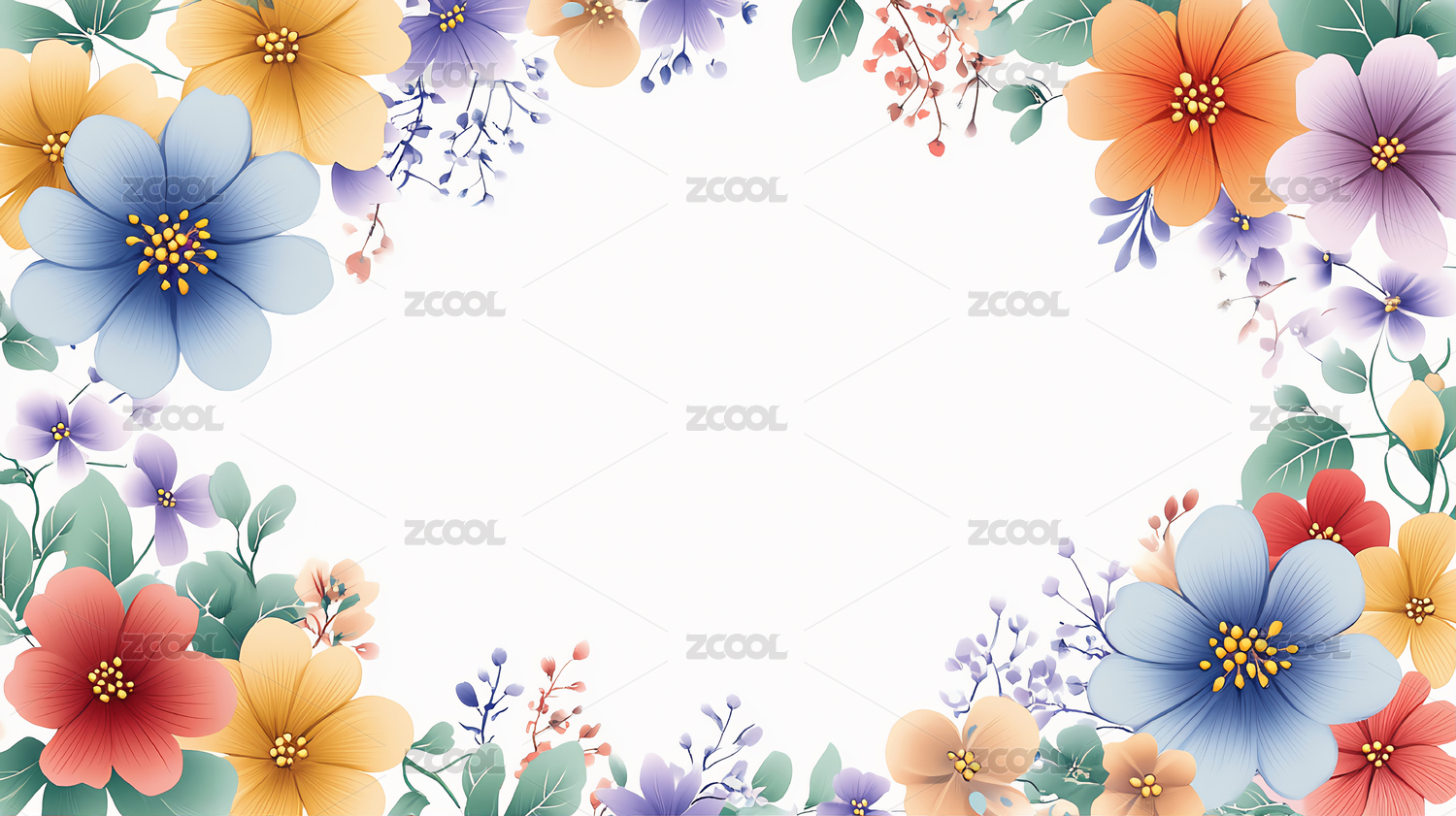 色彩斑斓的花卉边框设计