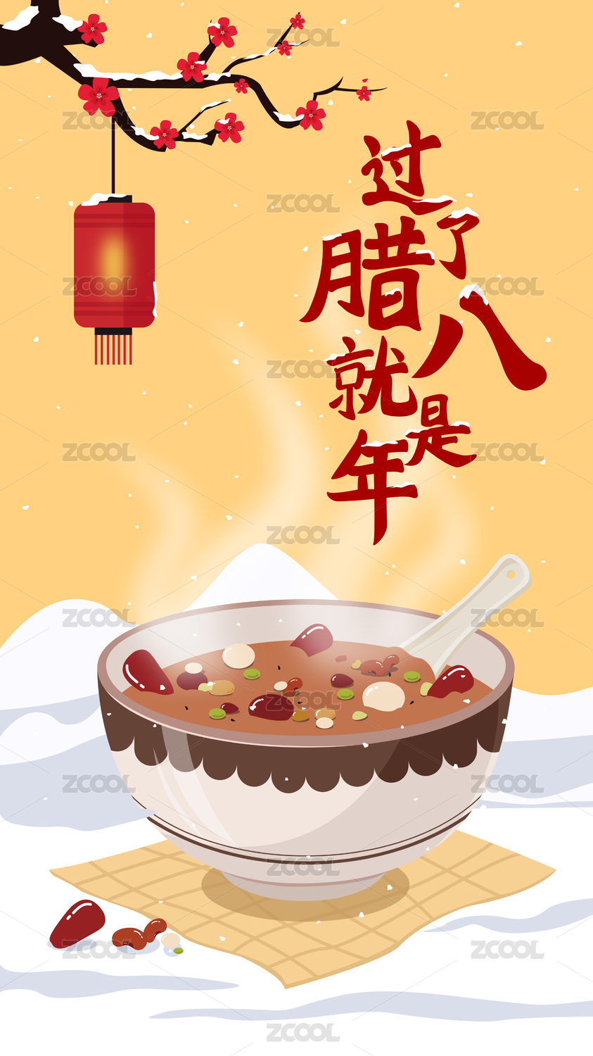 节日,腊八节,传统,梅花,灯笼,腊八粥,红枣,可爱,小清新,日历