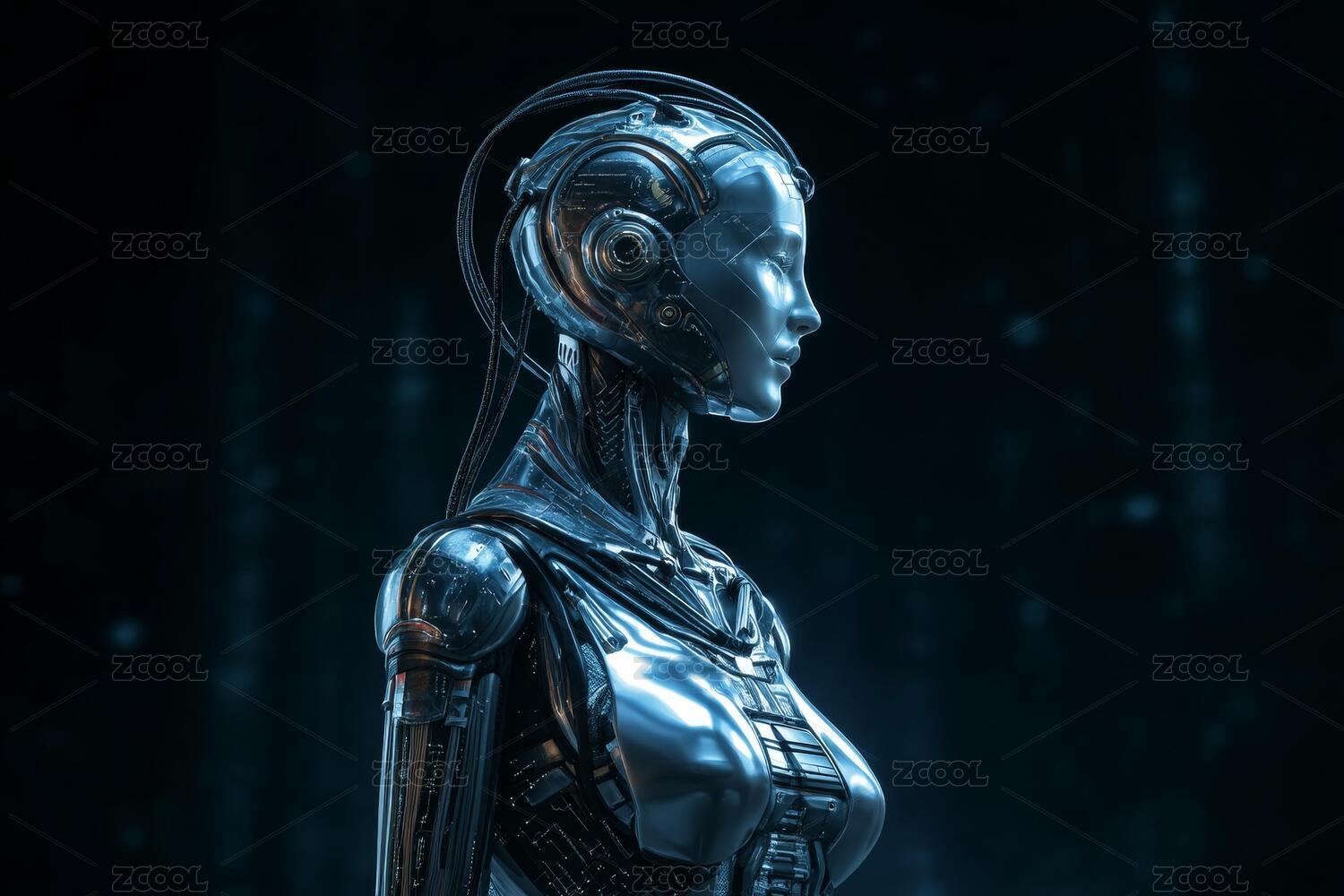 未来科技的女性机器人主题