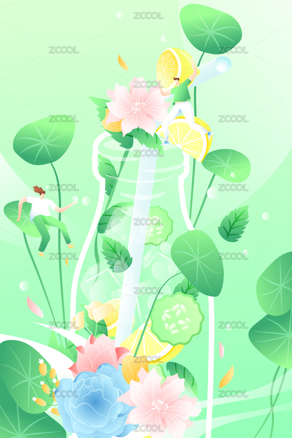 清新,食物,气泡,饮品,饮料,插画