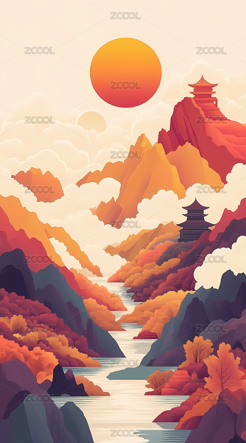 背景,传统,灯笼,飞鸟,风景,古典,古建筑,国潮,花卉,剪纸