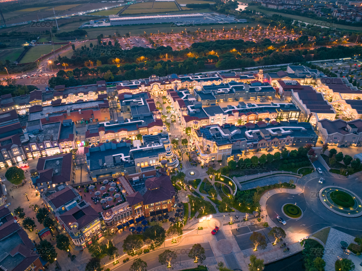 航拍苏州阳澄湖旅游度假区欧式小镇比斯特购