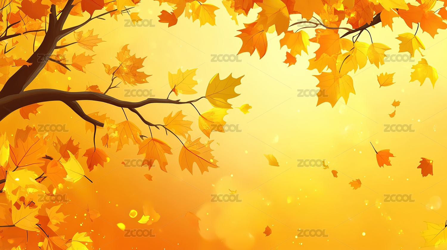 插画,设计,背景,黄色,卡通,自然,橙色,秋天,树叶,立秋