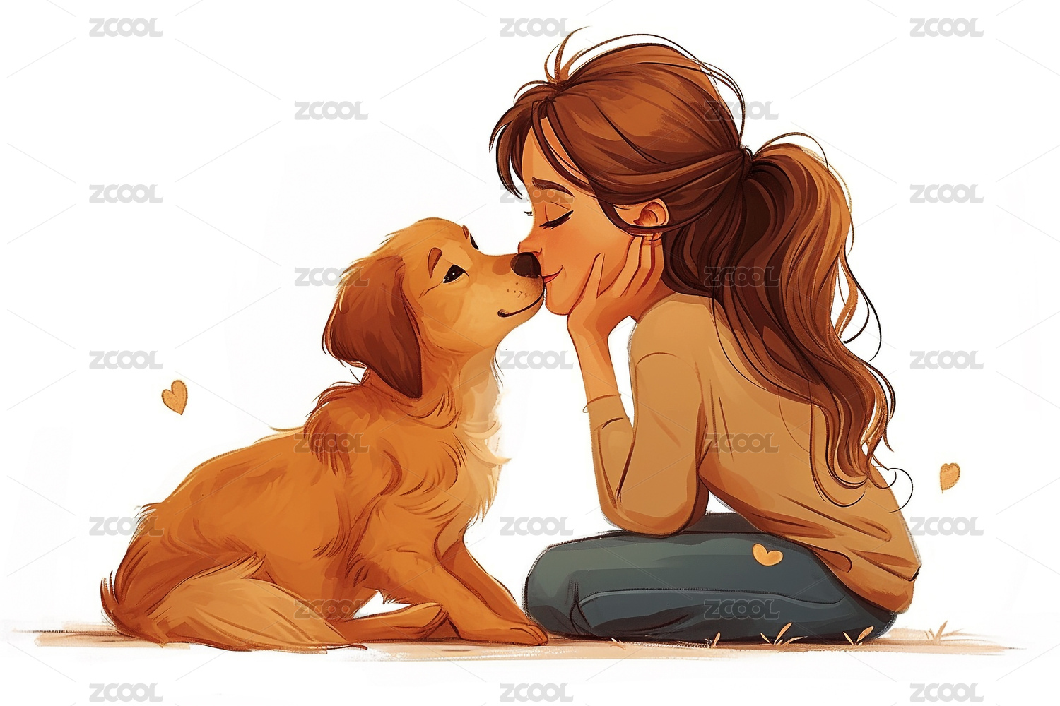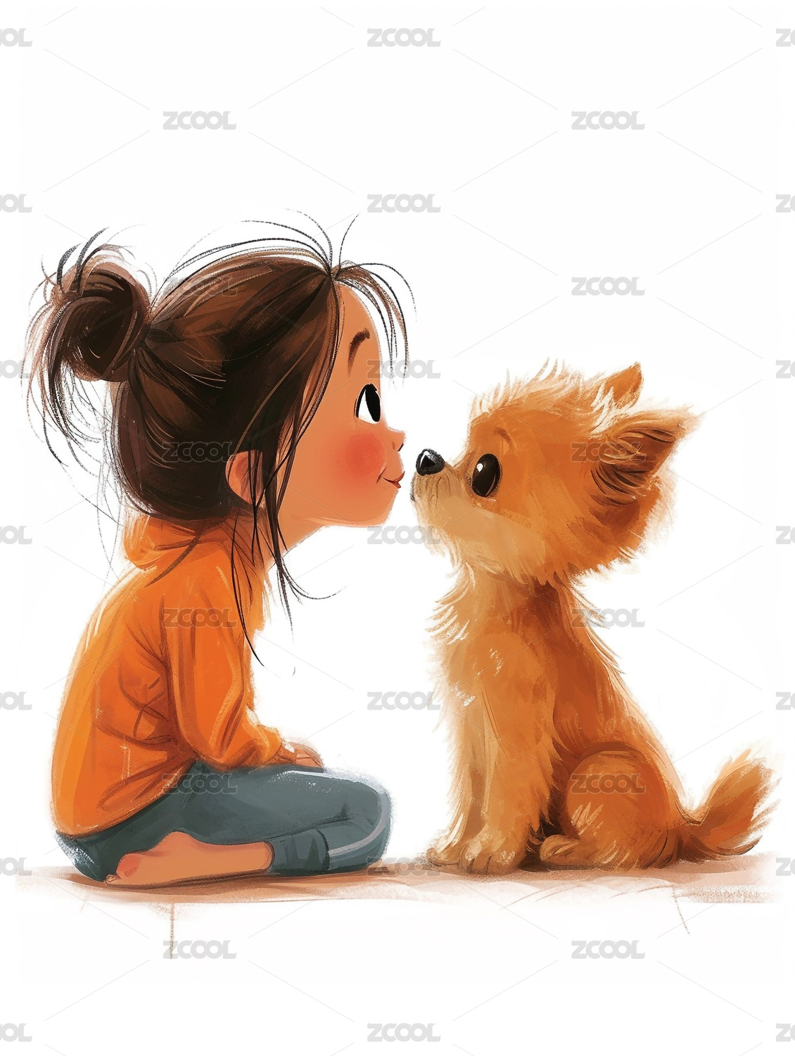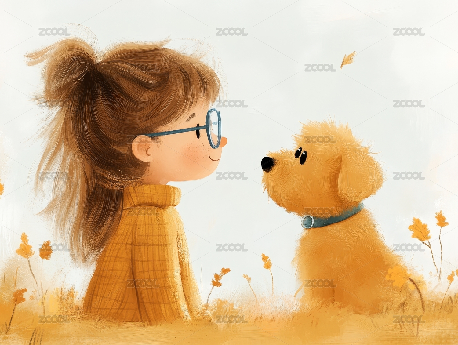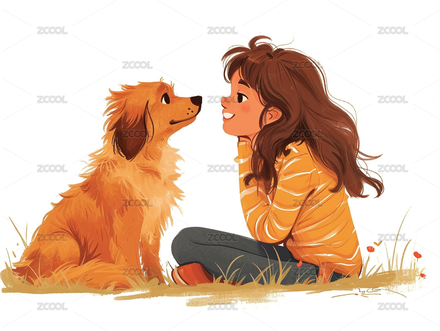 可爱的狗,狗子,宠物,萌宠,插画,绘本,故事,儿童绘本,人类与狗,女孩与狗
