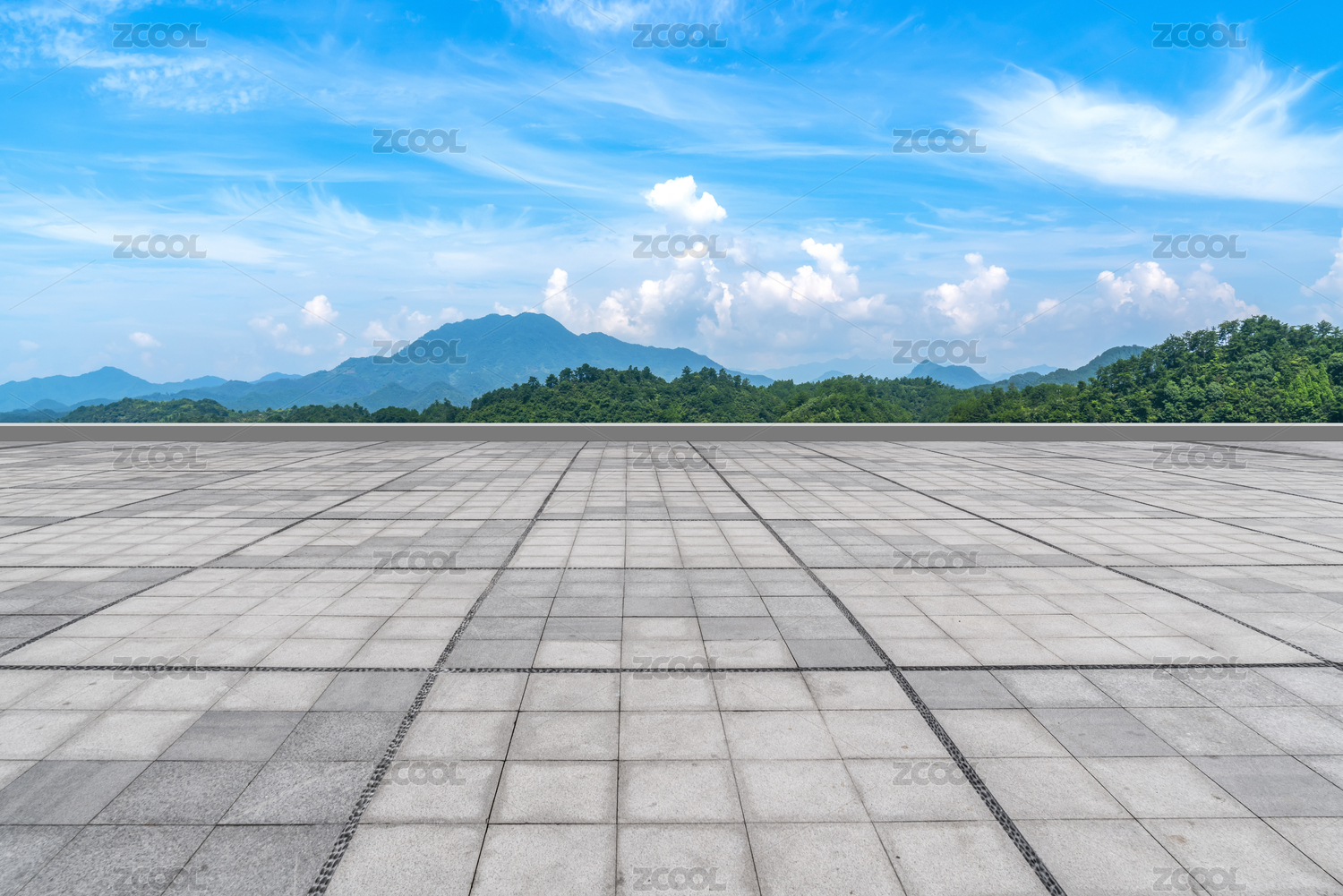 地砖路面和天空背景