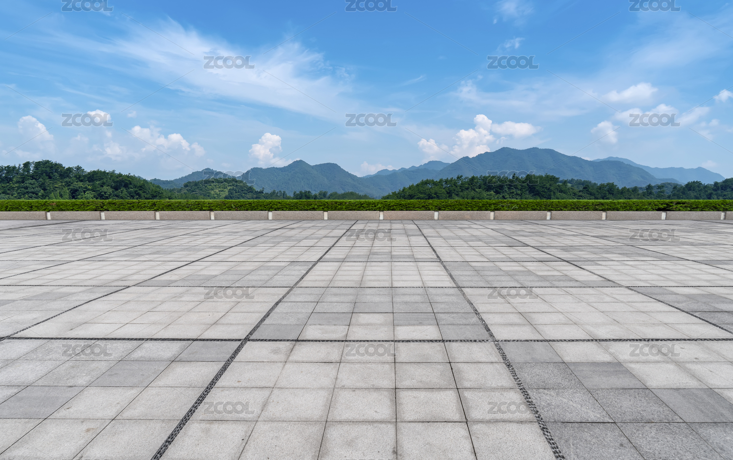 地砖路面和蓝天白云