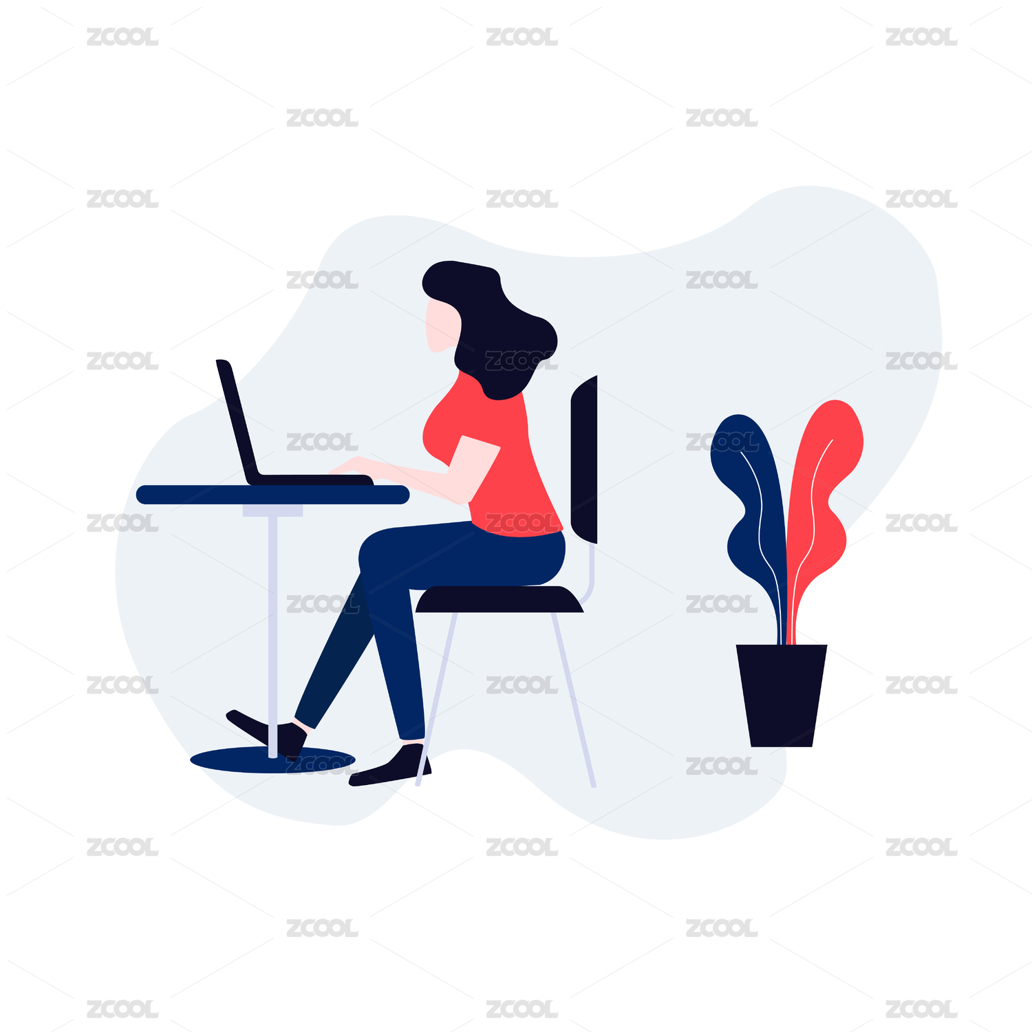 在客厅里上网完成工作的女士,扁平矢量人物场景创意概念插画