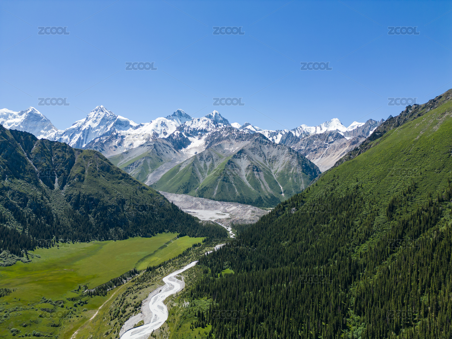 中国新疆夏季蓝天白云下G217独库公路沿途高山草原