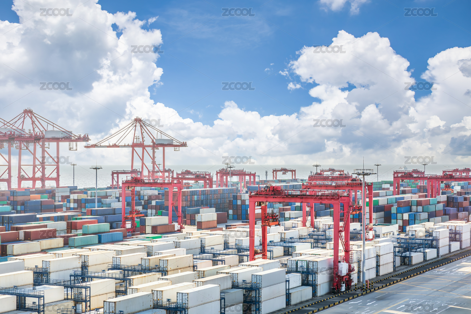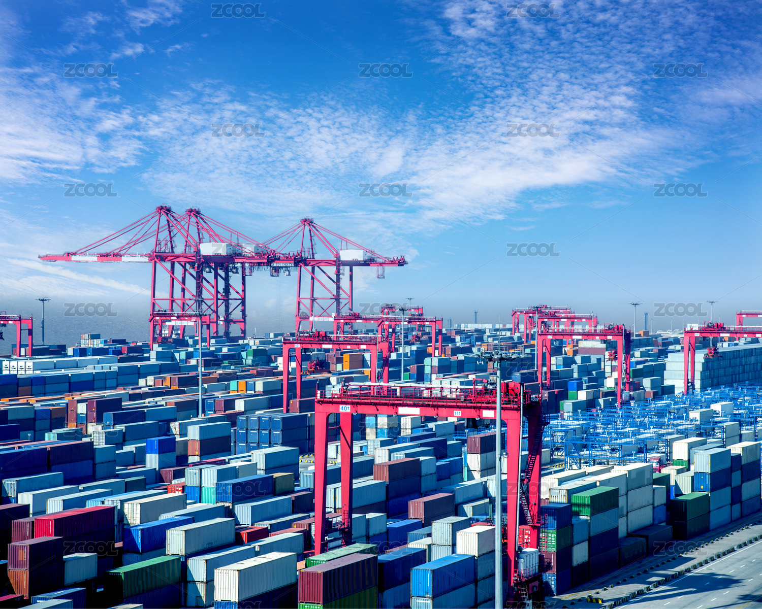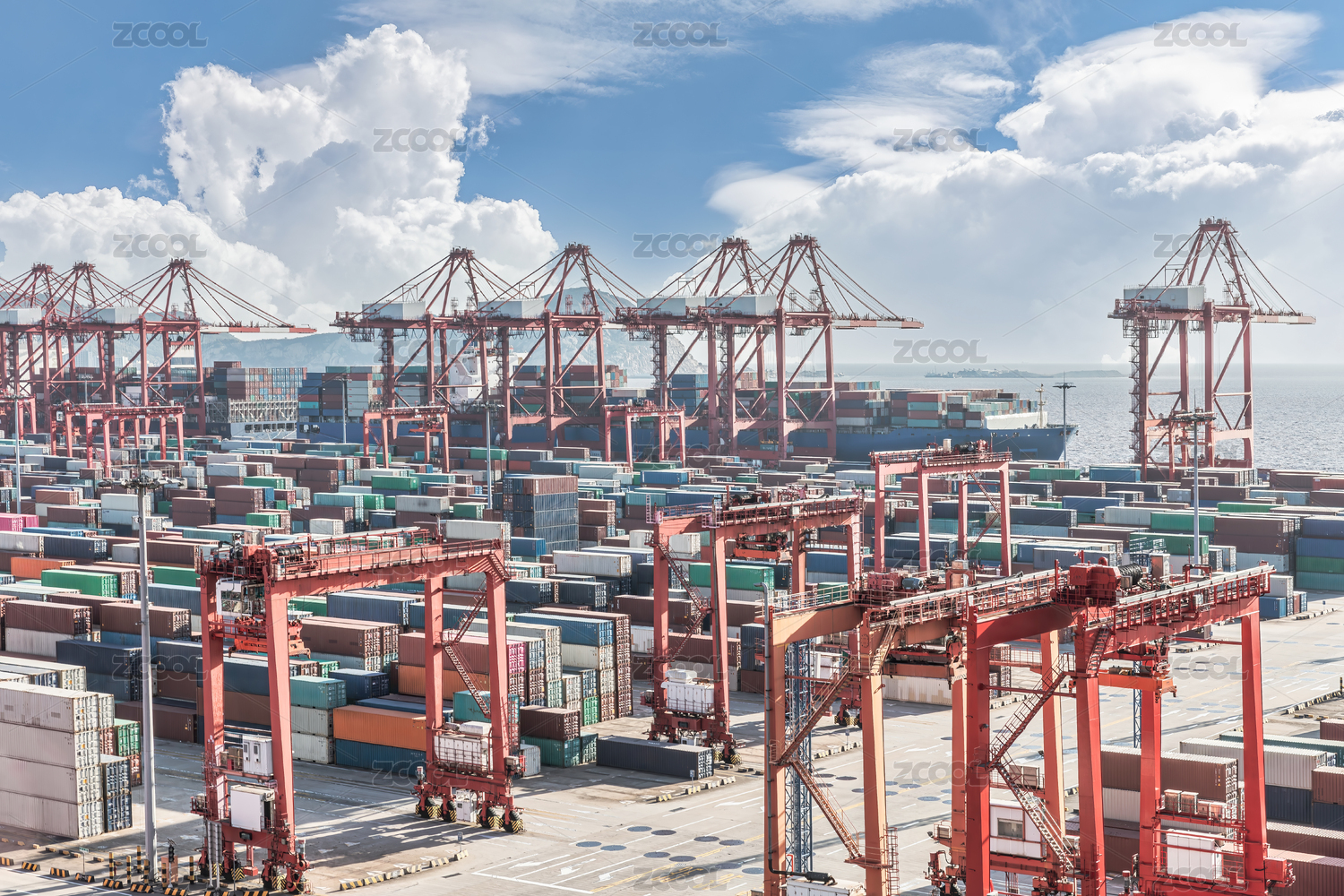 上海洋山港码头集装箱阵列浩大,运输繁忙