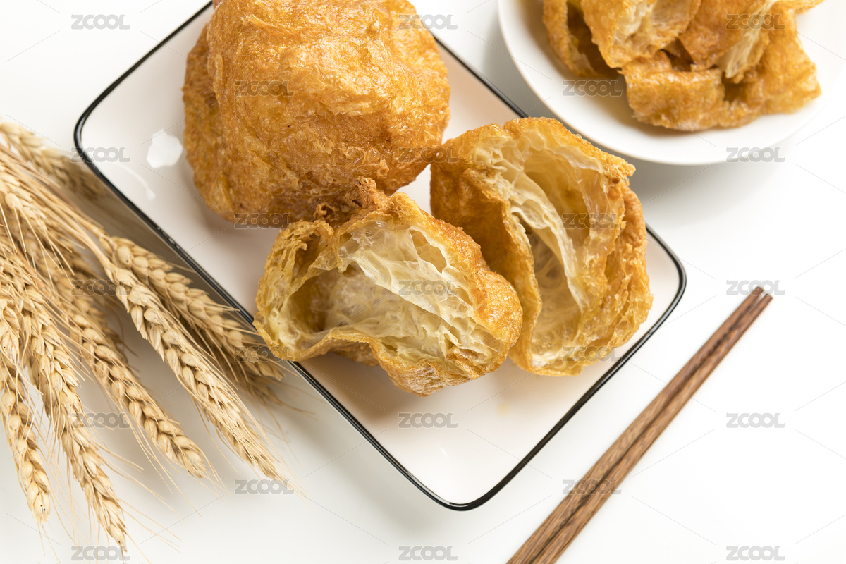 面筋,油面筋,炸面筋,油炸面筋,植物蛋白,一盘,切块面筋,切开的,筷子,筷子夹