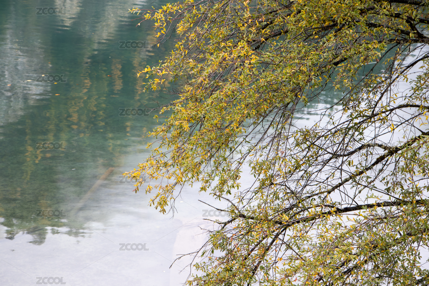 四川省阿坝九寨沟-蓝天白云下的森林与湖景