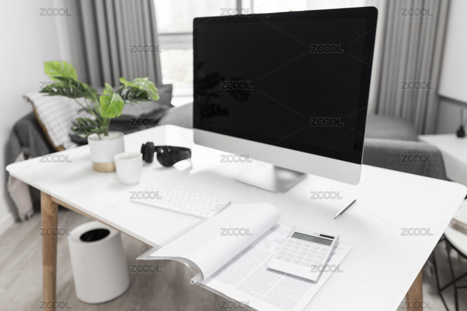 电脑简约办公桌面场景