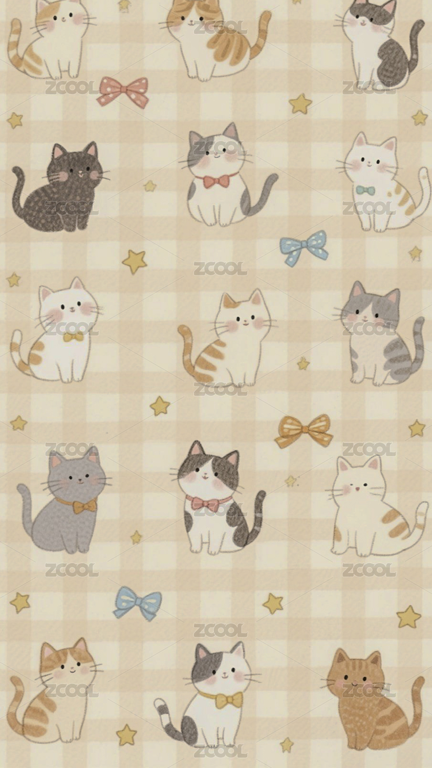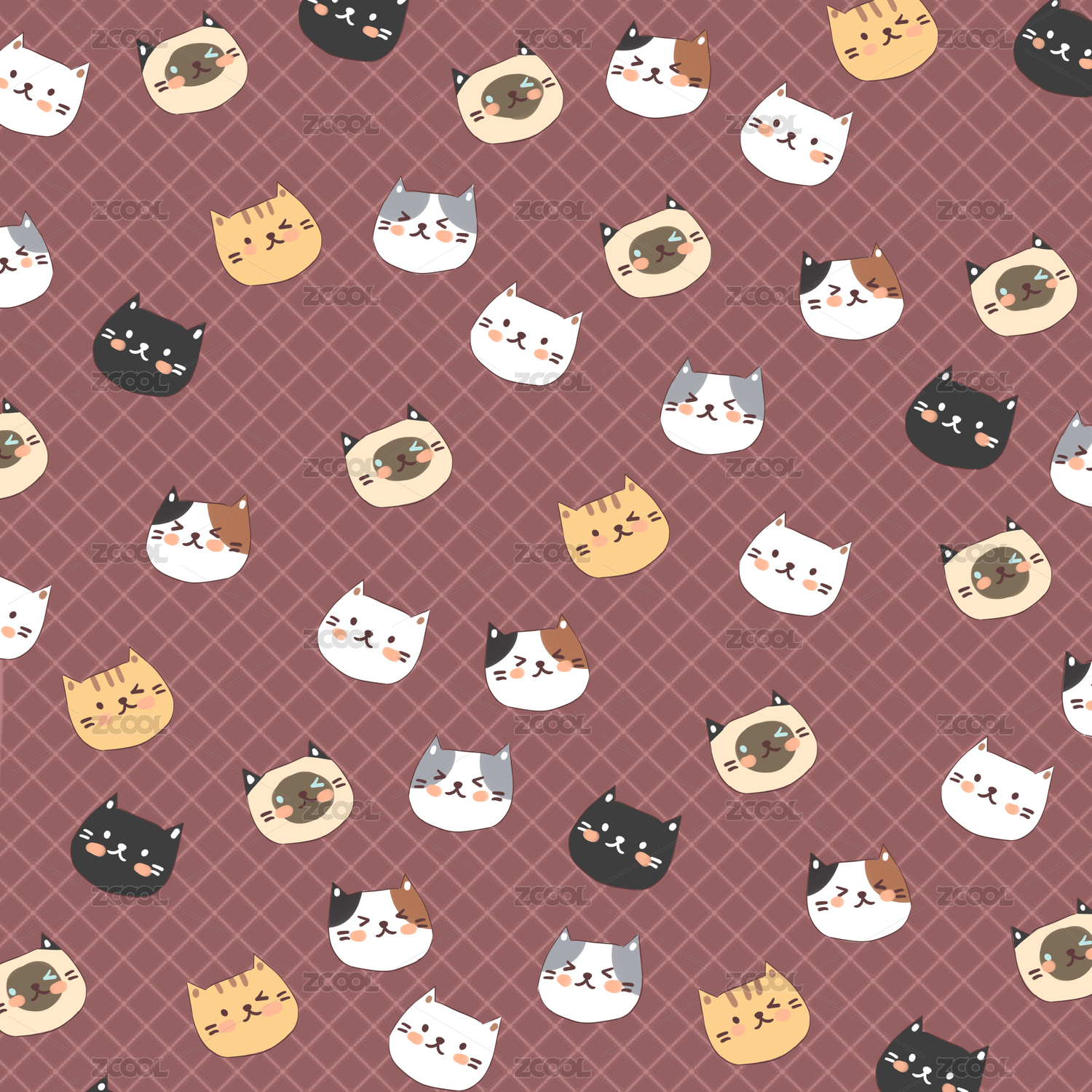 可爱卡通小猫吃鱼儿童无缝四方连续背景