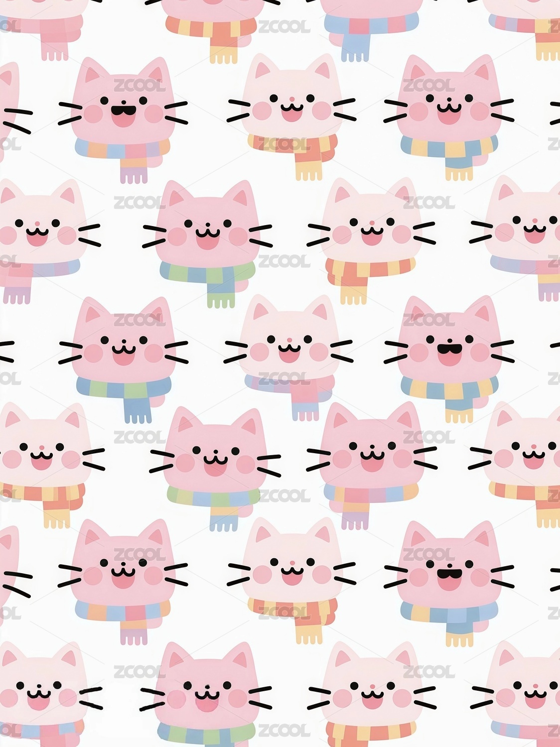 可爱的粉色猫咪草莓四方连续图案无缝纹理图