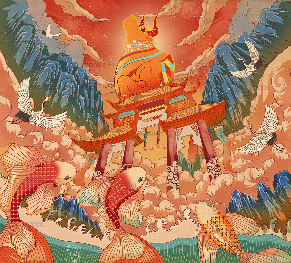 牛年节日插画手绘传统国风习俗文化国潮春节