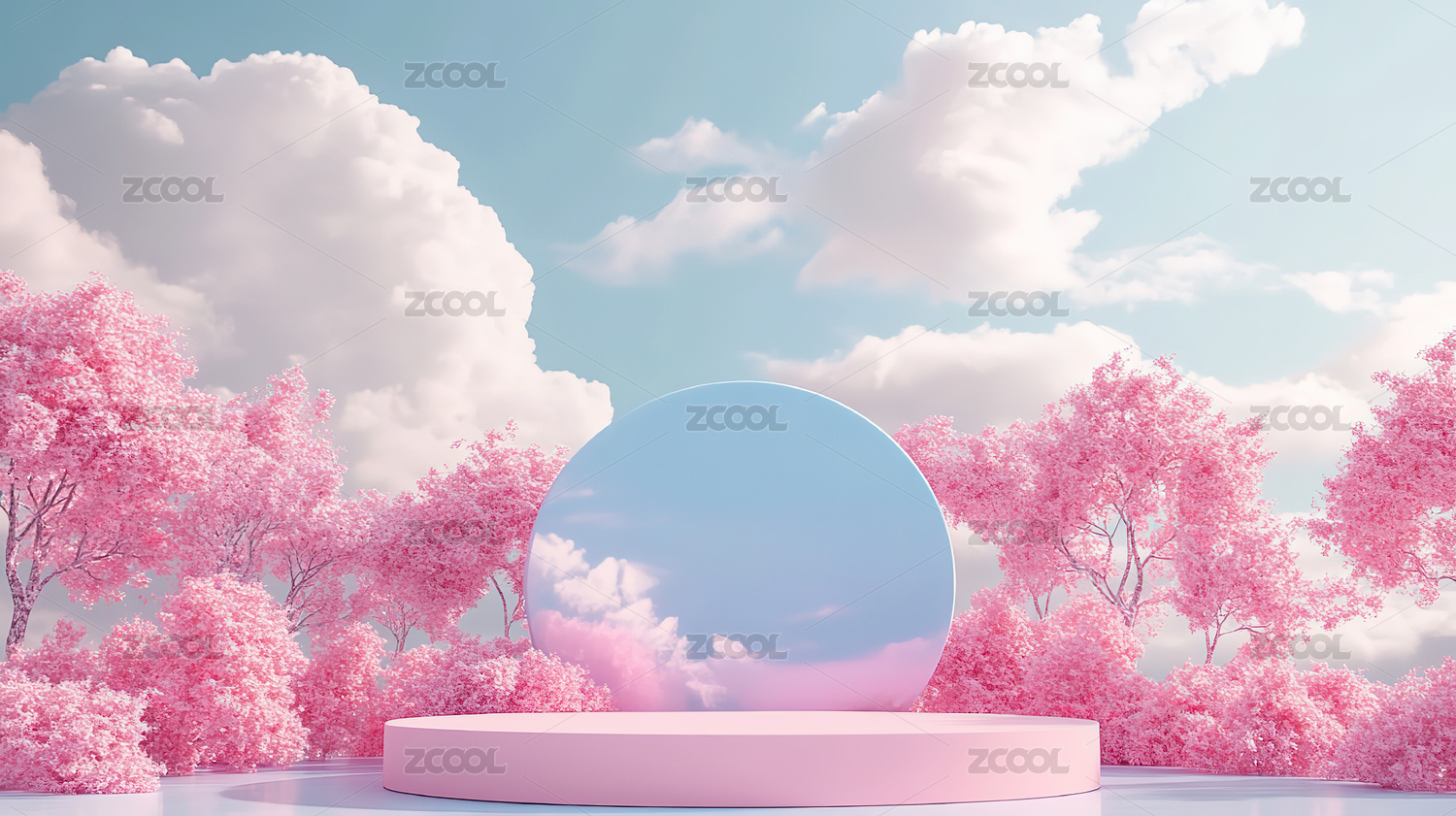 梦幻,粉色场景,背景,天空,云朵,光线柔和,盛开的樱花树,花朵,粉色,树木