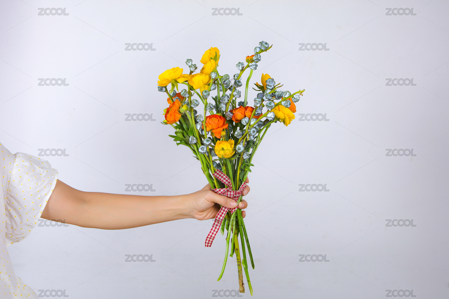 少女手里拿着美丽温馨的鲜花洋牡丹
