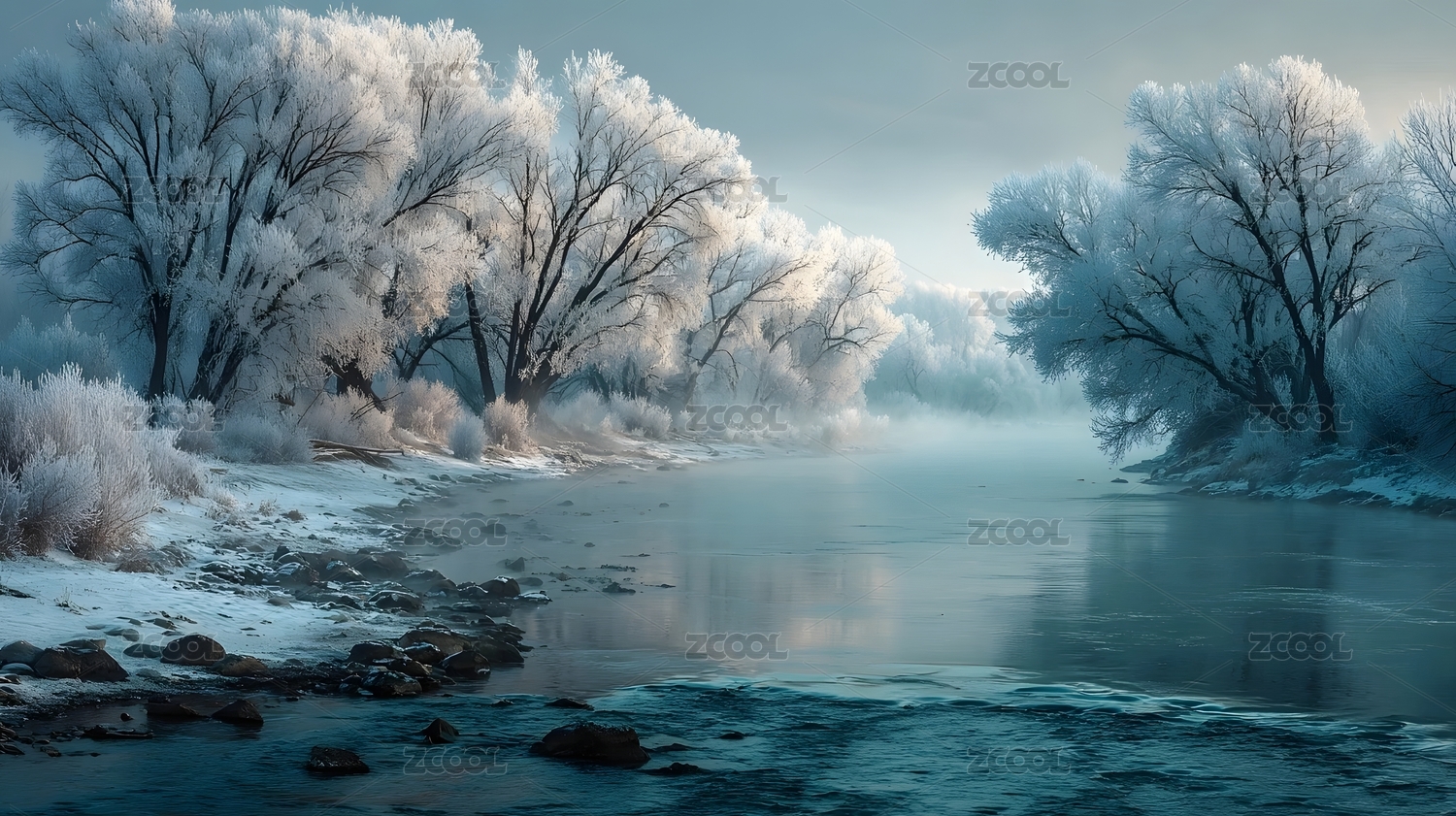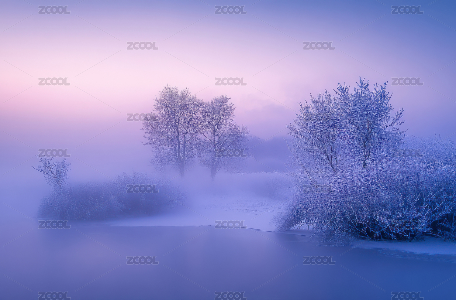 辽宁省朝阳市冬季日出中的天鹅雾淞